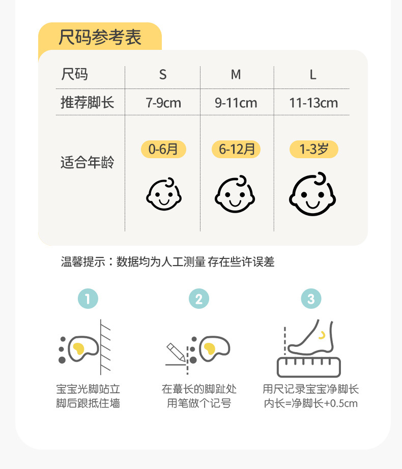 • S 사이즈 [권장 발 길이 7-9cm] 0-6개월