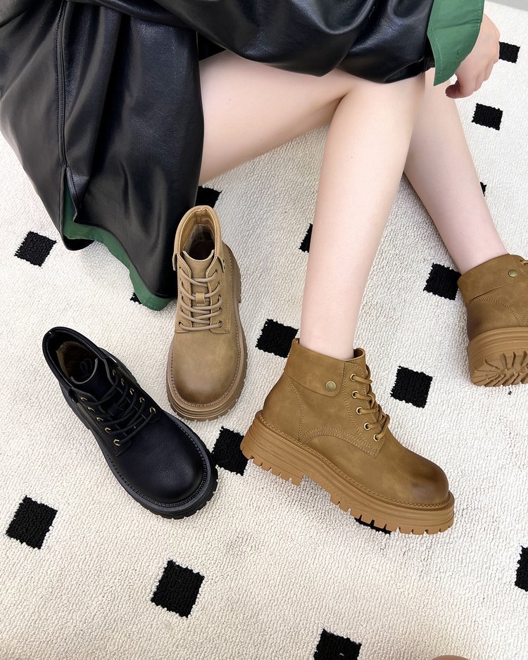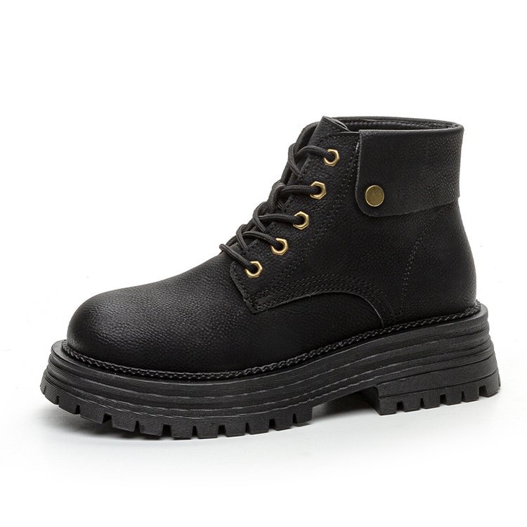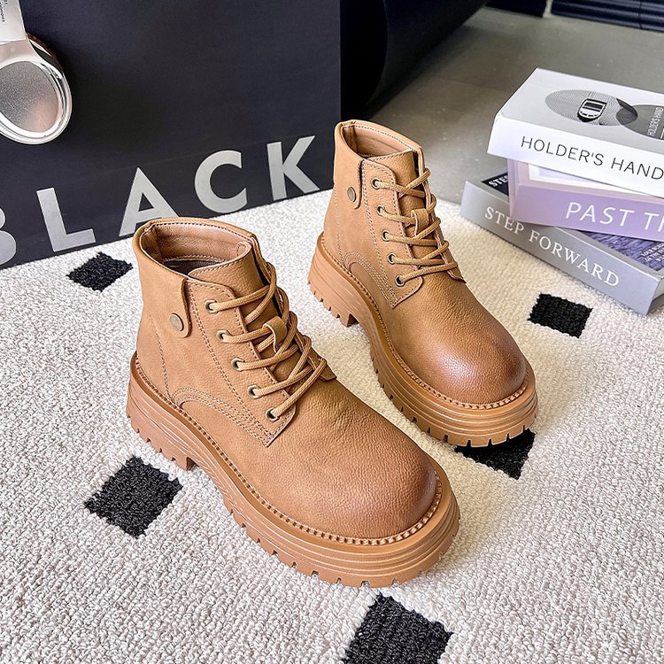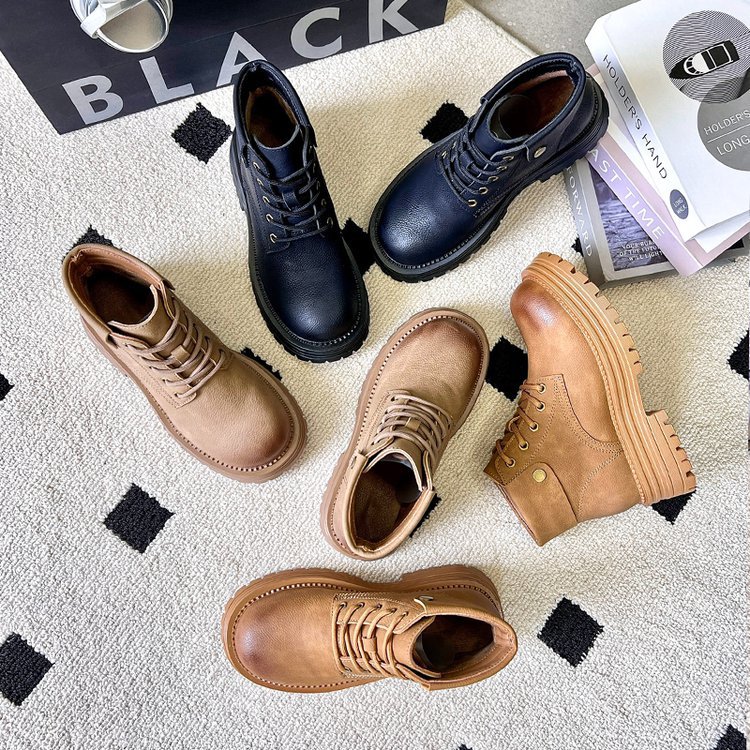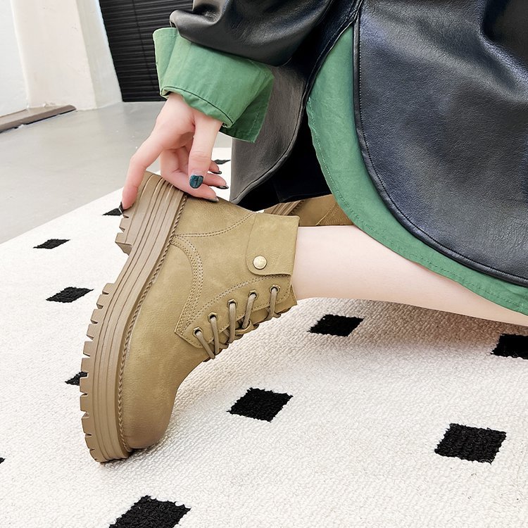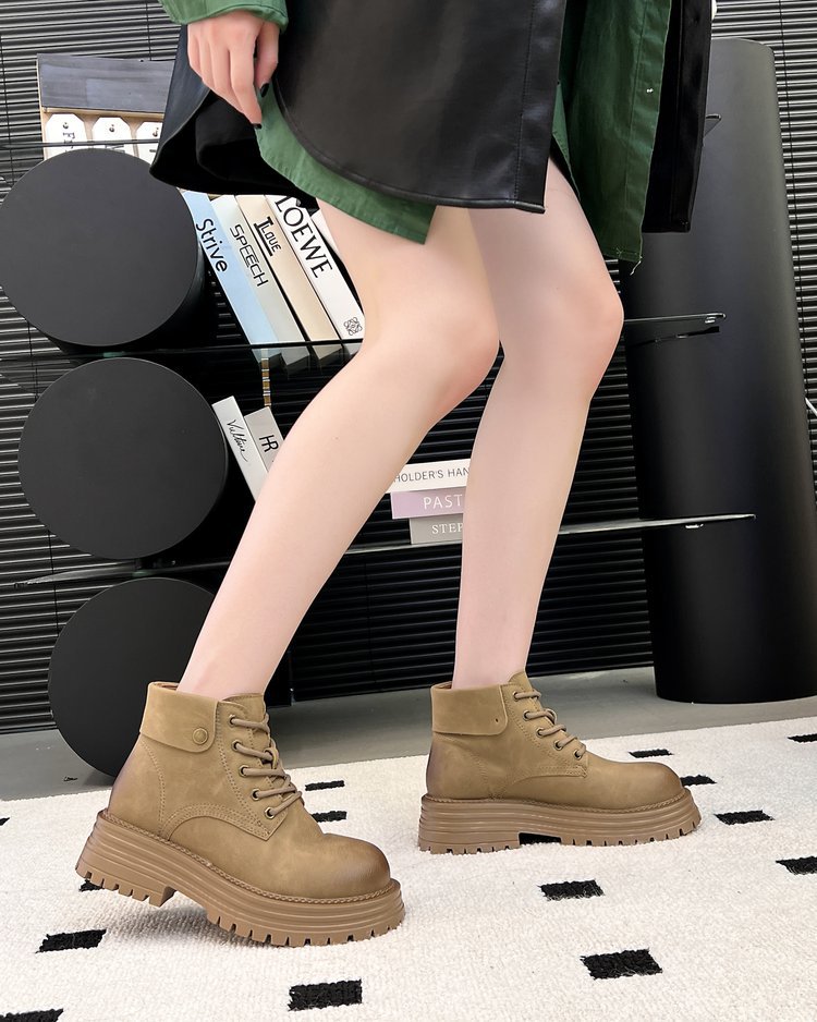 두꺼운 바닥 두꺼운 힐 플립 프로스트 가죽 마틴 부츠 여성 부츠 2024 새로운 영국 스타일 캐주얼 오토바이 부츠 짧은 부츠스토어 가기