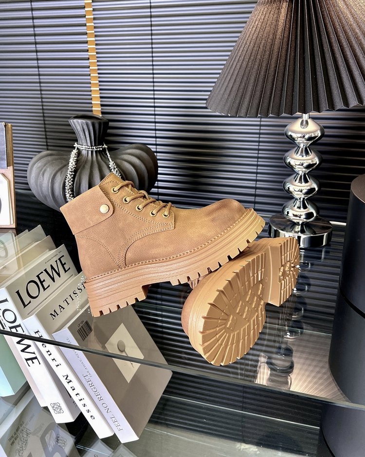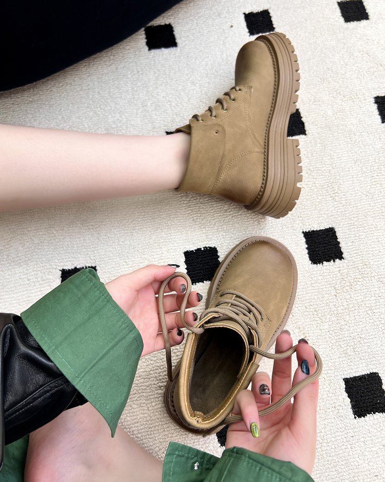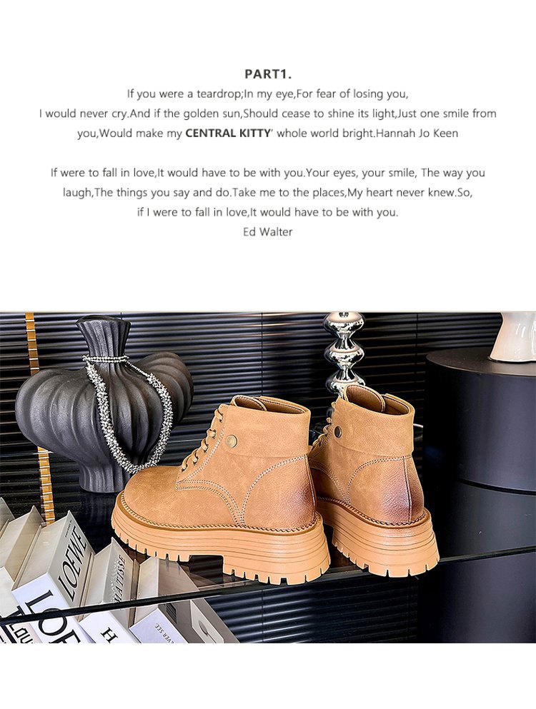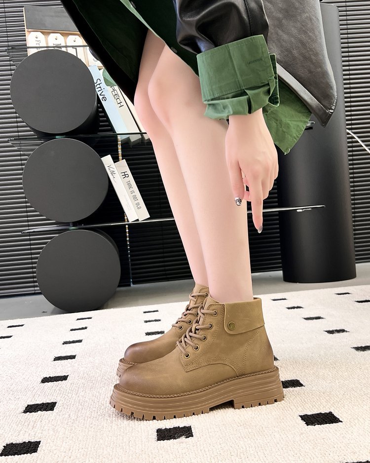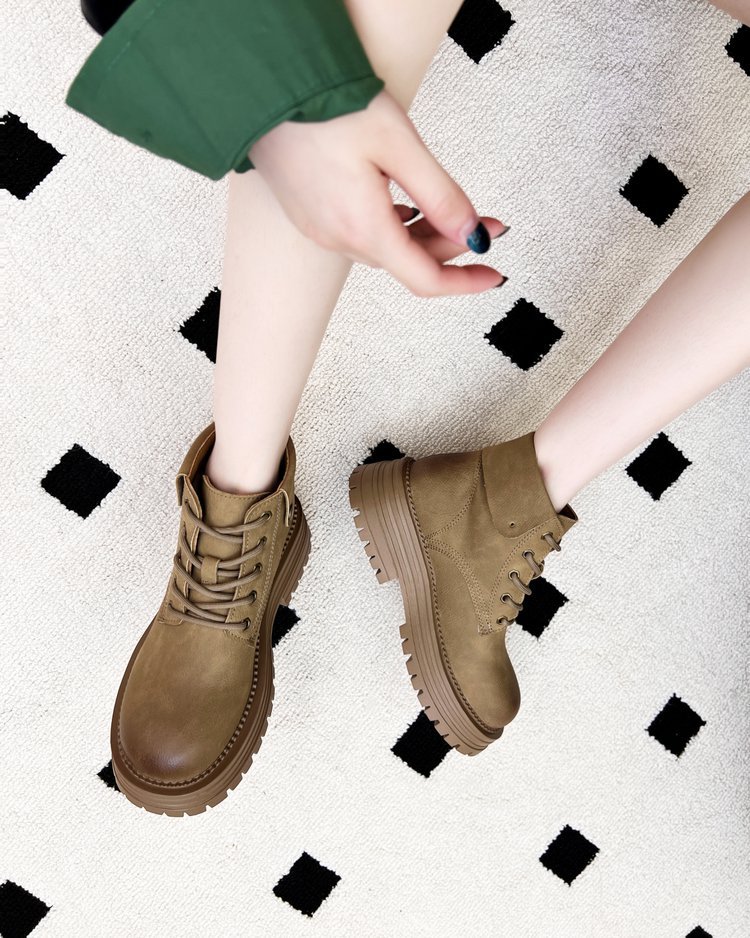 두꺼운 바닥 두꺼운 힐 플립 프로스트 가죽 마틴 부츠 여성 부츠 2024 새로운 영국 스타일 캐주얼 오토바이 부츠 짧은 부츠스토어 가기