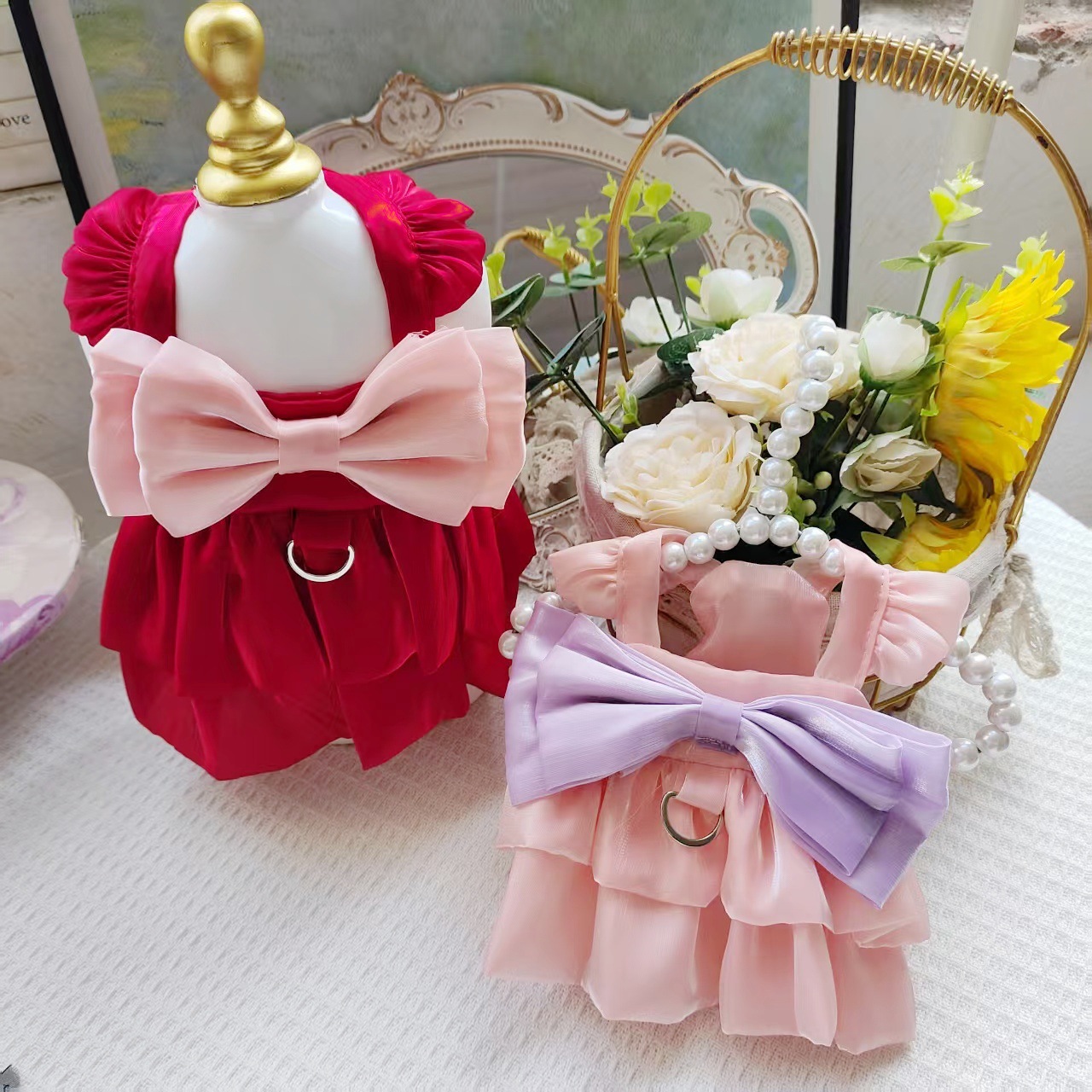 애완동물 봄 여름 신상품, 끈이 달린 공주풍 달콤한 퍼프 스커트, 소형견, 비숑, 고양이용 리본 드레스, 얇은 스타일스토어 가기