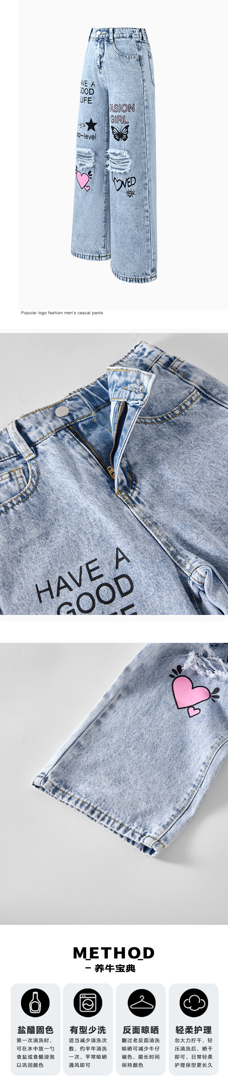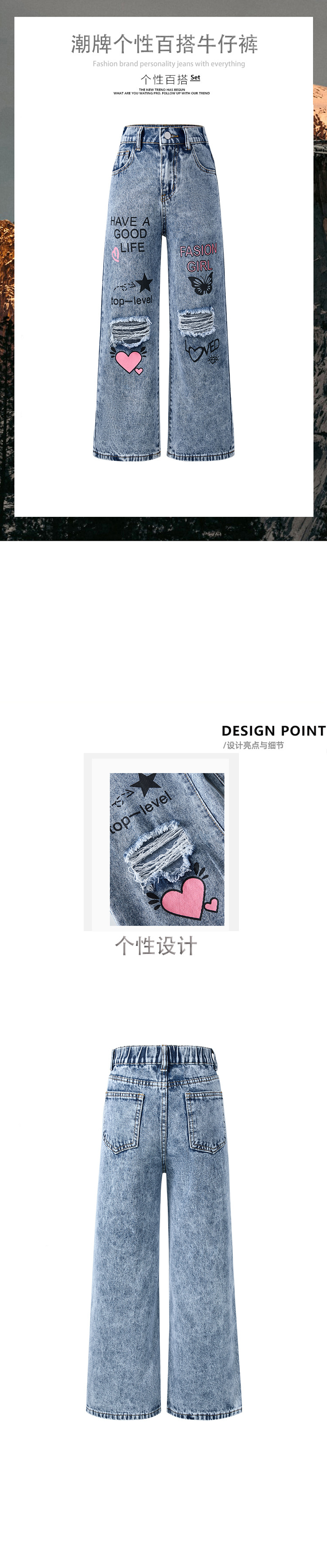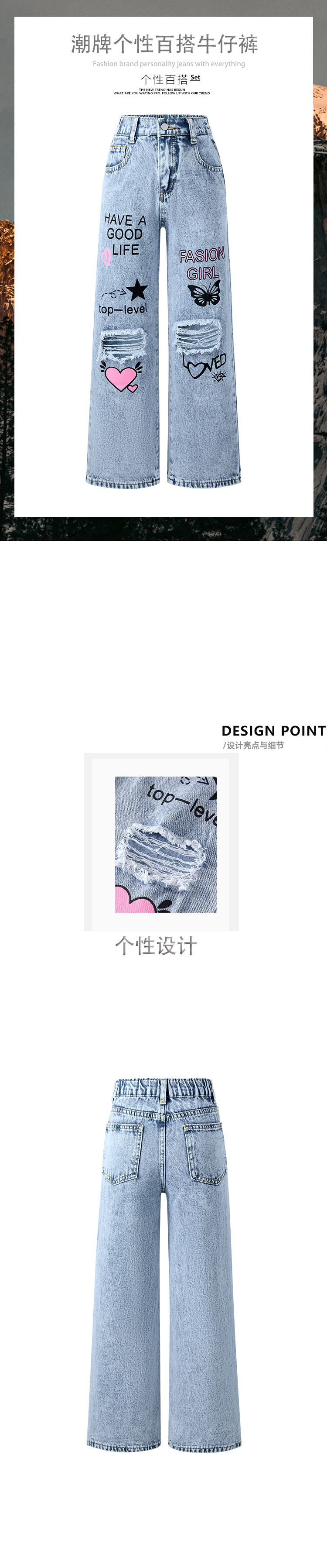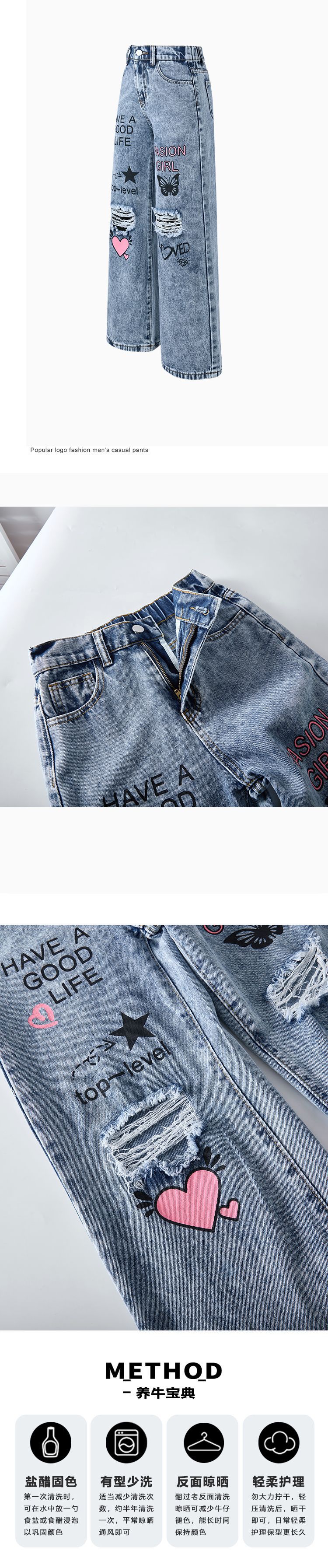 유럽과 미국을위한 국경 간 아마존. 현명한. 십대 소녀의 눈송이 씻은 구멍 인쇄 넓은 다리 청바지스토어 가기