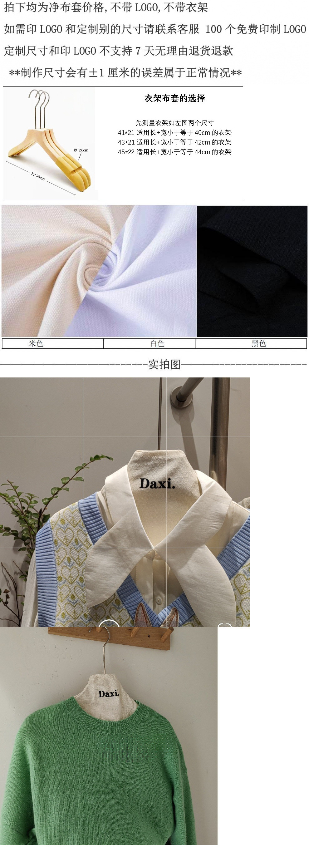 의류 매장 옷걸이 미끄럼 방지 헝겊 커버 한국 면 린넨 우드 옷걸이 커버 인쇄 가능한 스웨터 퓨어 코튼 비 마킹 천