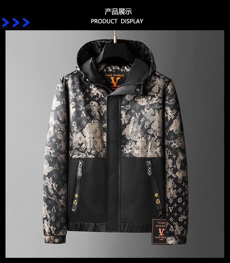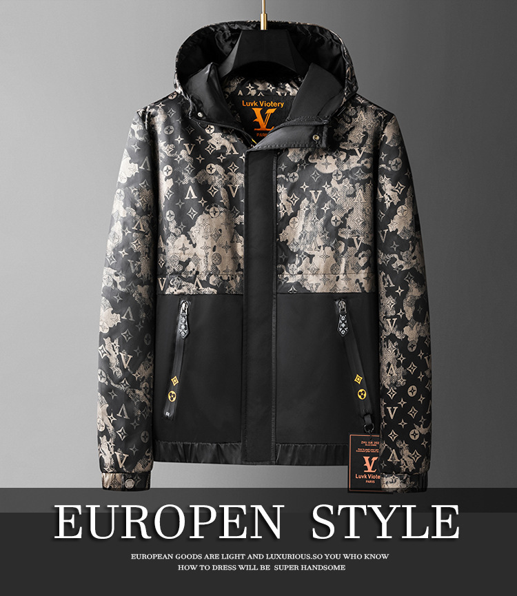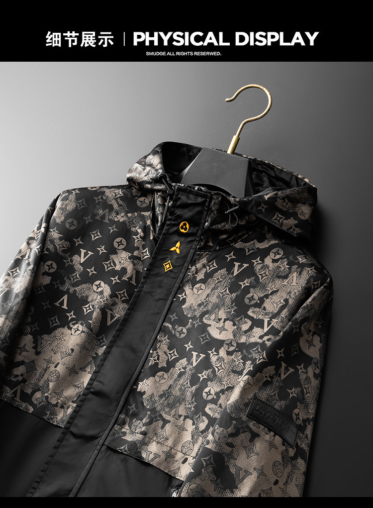 유럽 고급 남성 의류 2025 봄, 가을 새로운 후드 재킷 남성 라이트 럭셔리 프린트 트렌디 재킷 남성상의스토어 가기