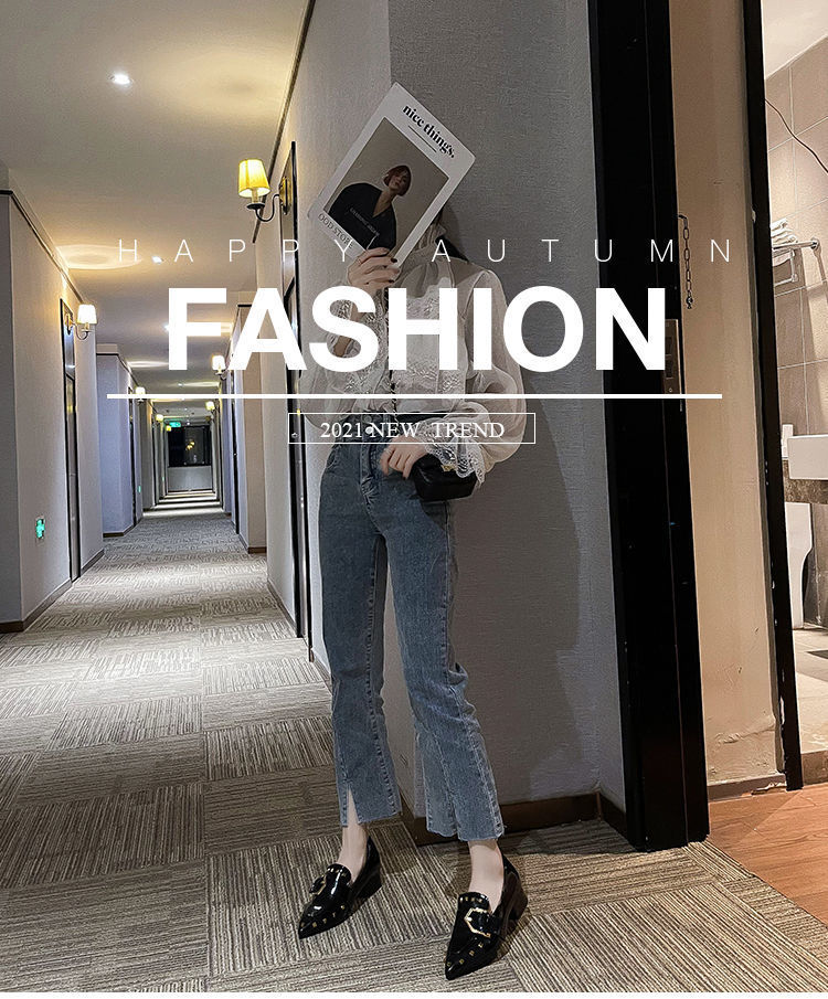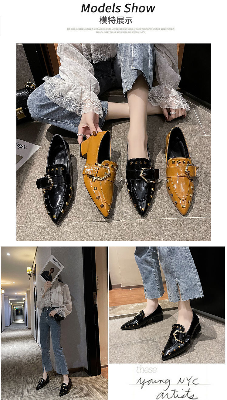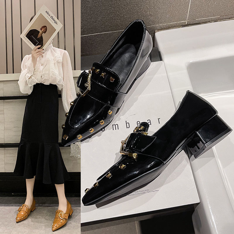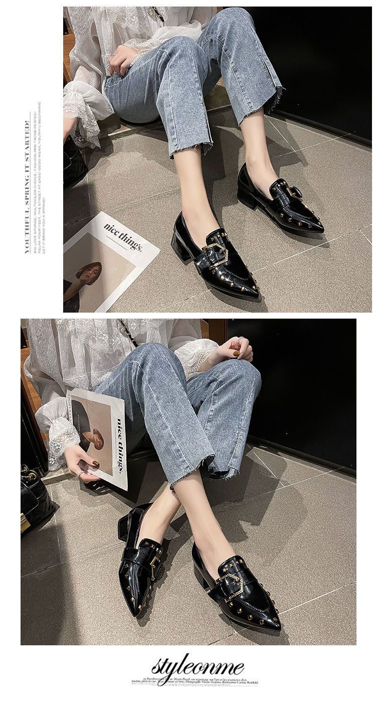 WD 여성 신발 2024 봄 새로운 유행 신발 한쪽 다리 지적 발가락 두꺼운 뒤꿈치 단일 신발 패션 다목적 캐주얼 간단한 Doudou스토어 가기