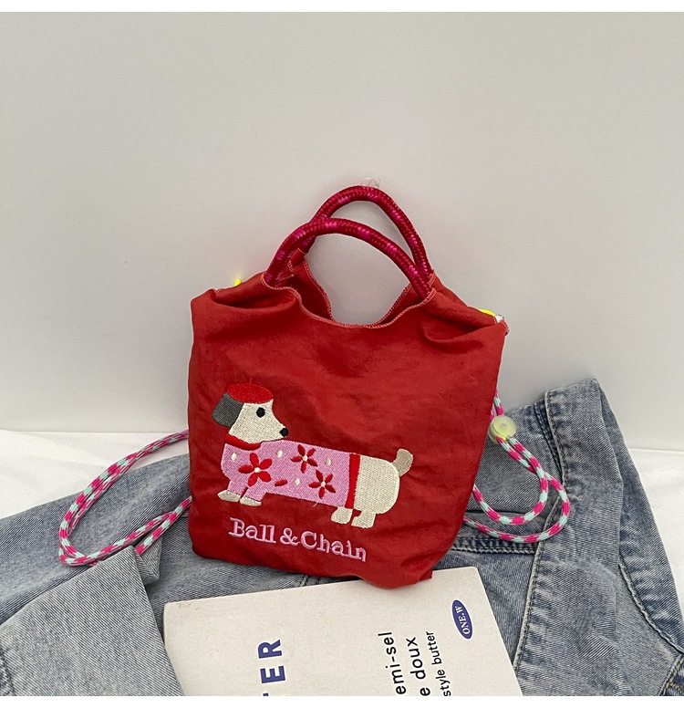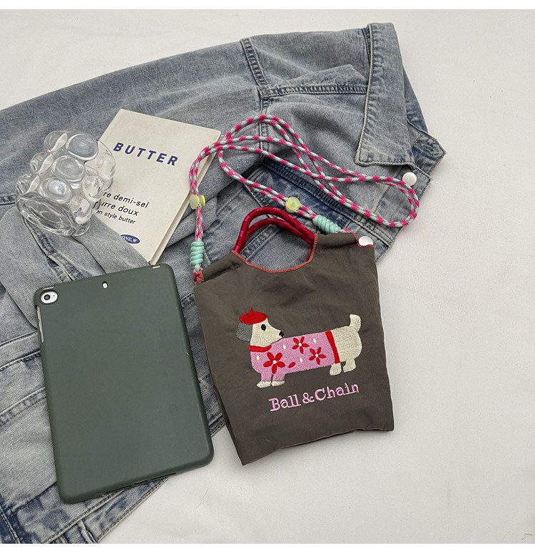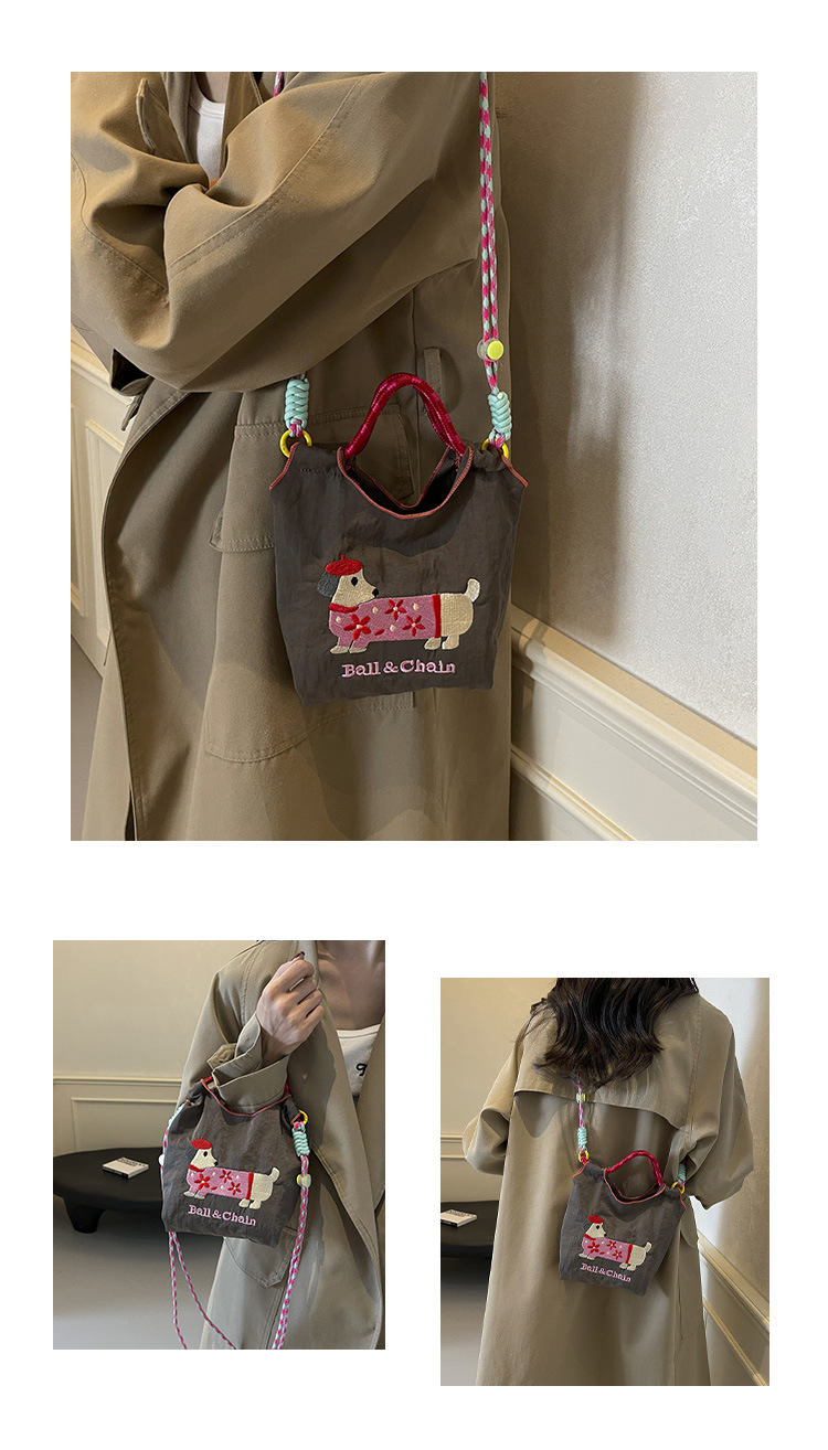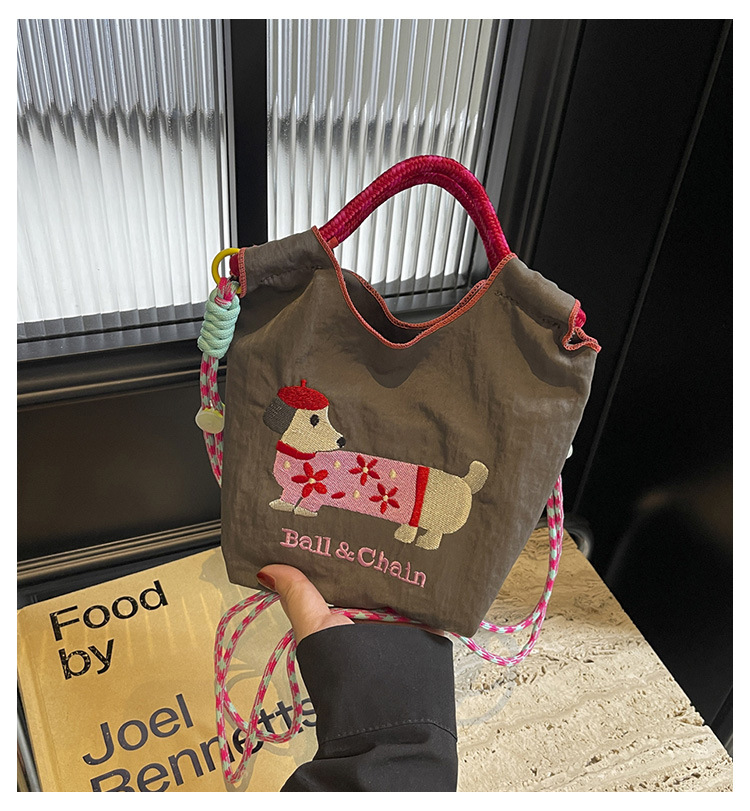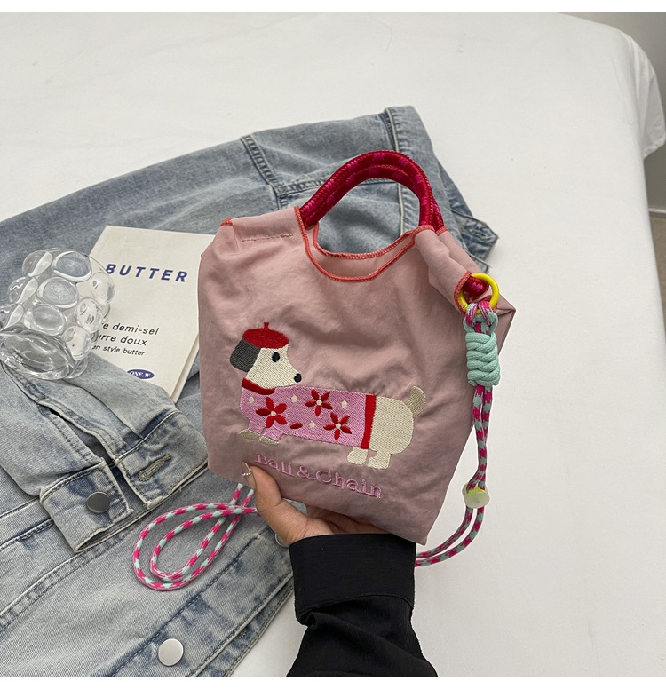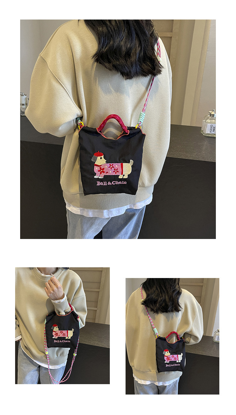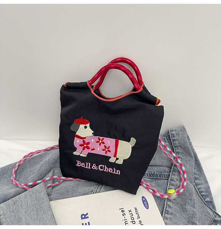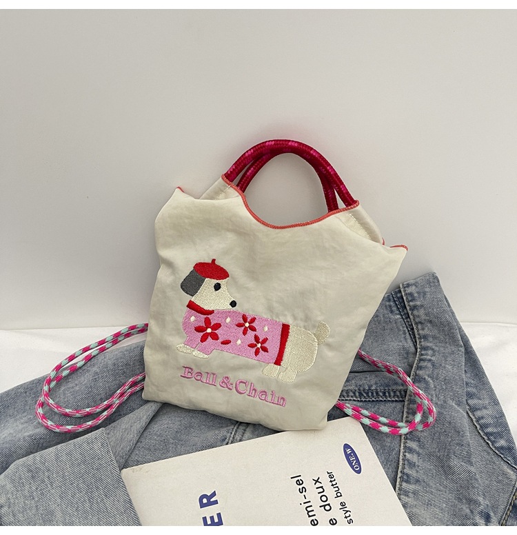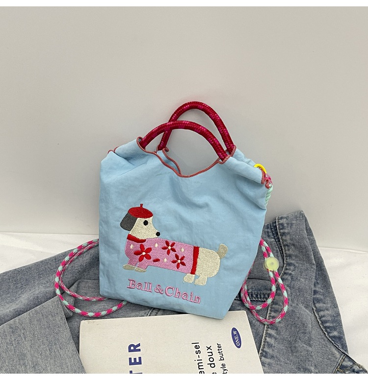 인터넷 축하 같은 스타일 일본 스타일 귀여운 만화 개 타월 자수 크로스 바디 백 대용량 나일론 핸드백 여성용 버킷 백