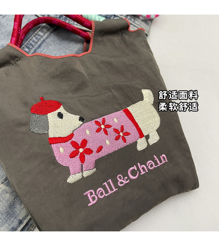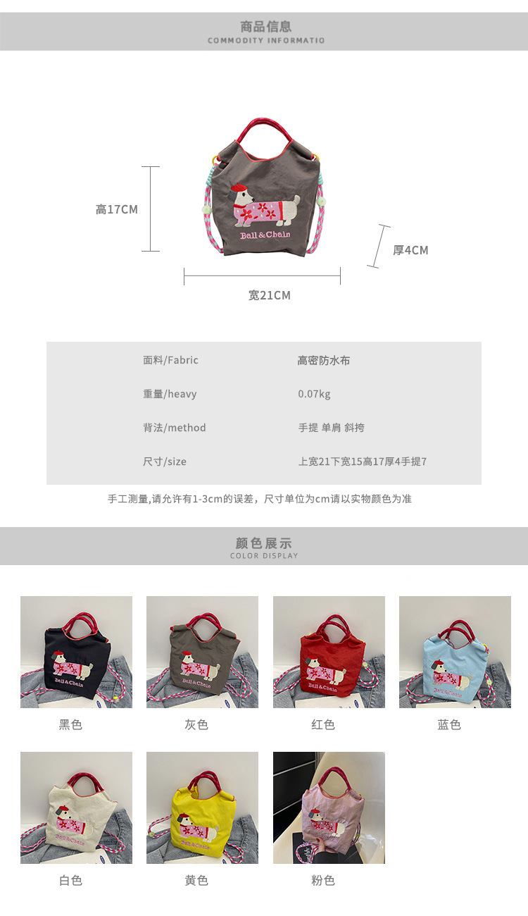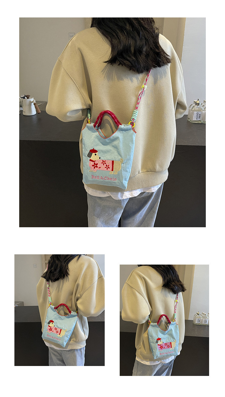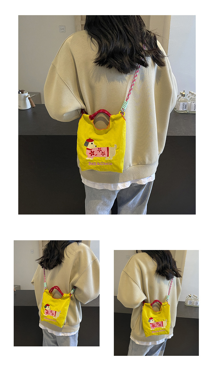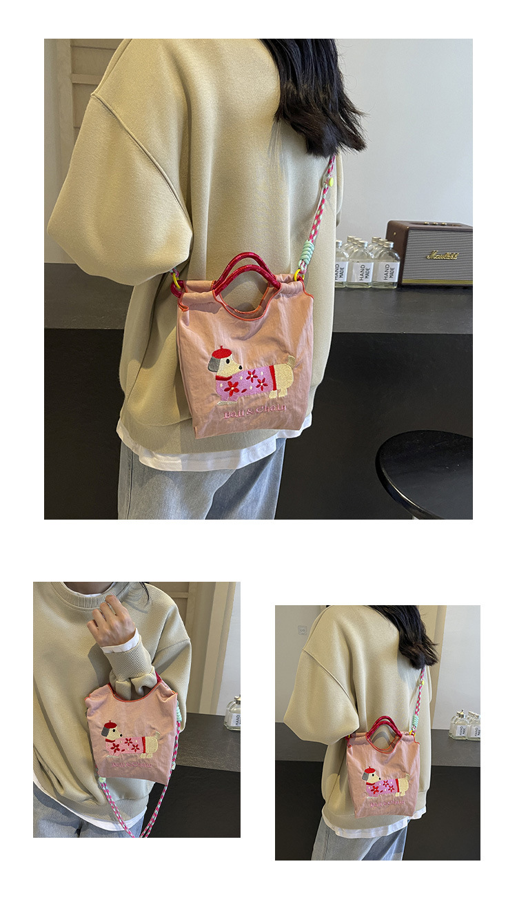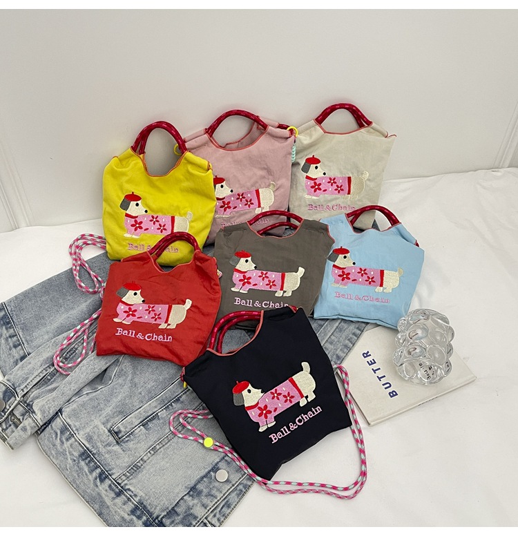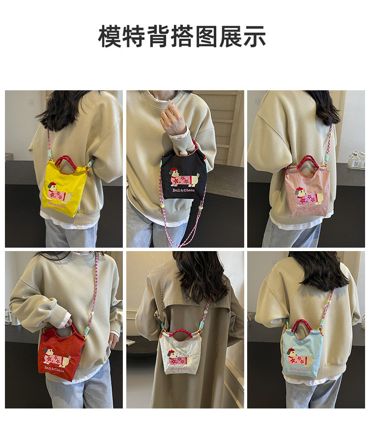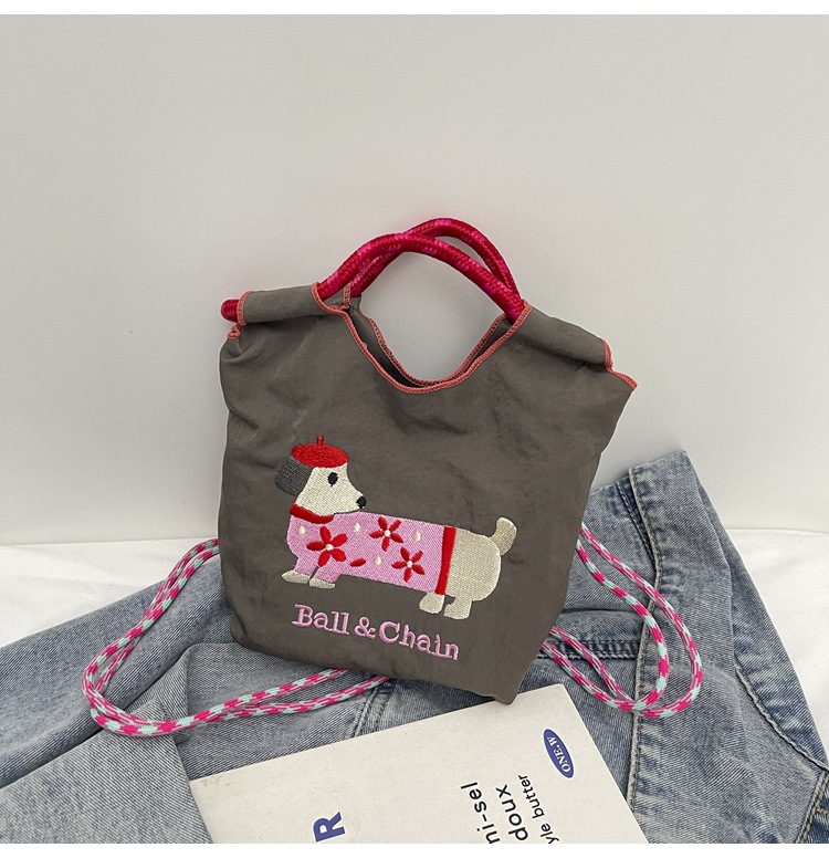 인터넷 축하 같은 스타일 일본 스타일 귀여운 만화 개 타월 자수 크로스 바디 백 대용량 나일론 핸드백 여성용 버킷 백