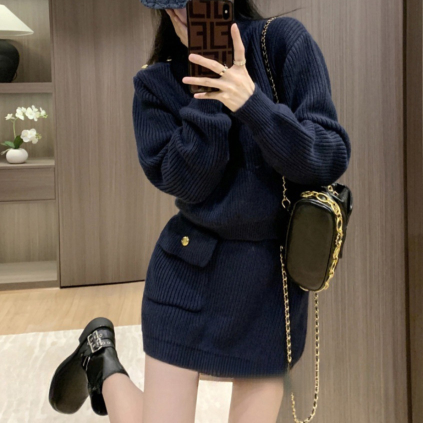 2025년 한국 스타일 유행 투피스 여성 세트, 고급스럽고 우아한 니트 스커트 가을 의상 세트