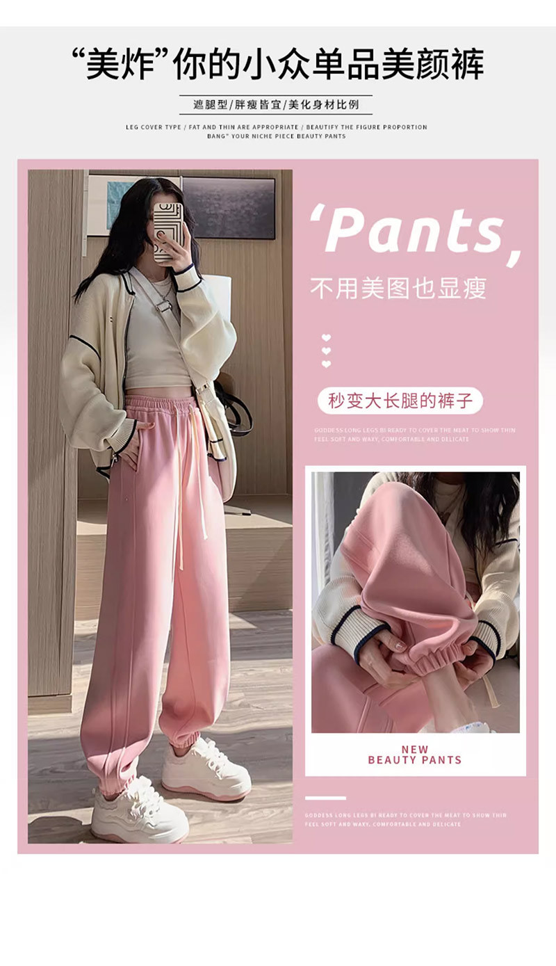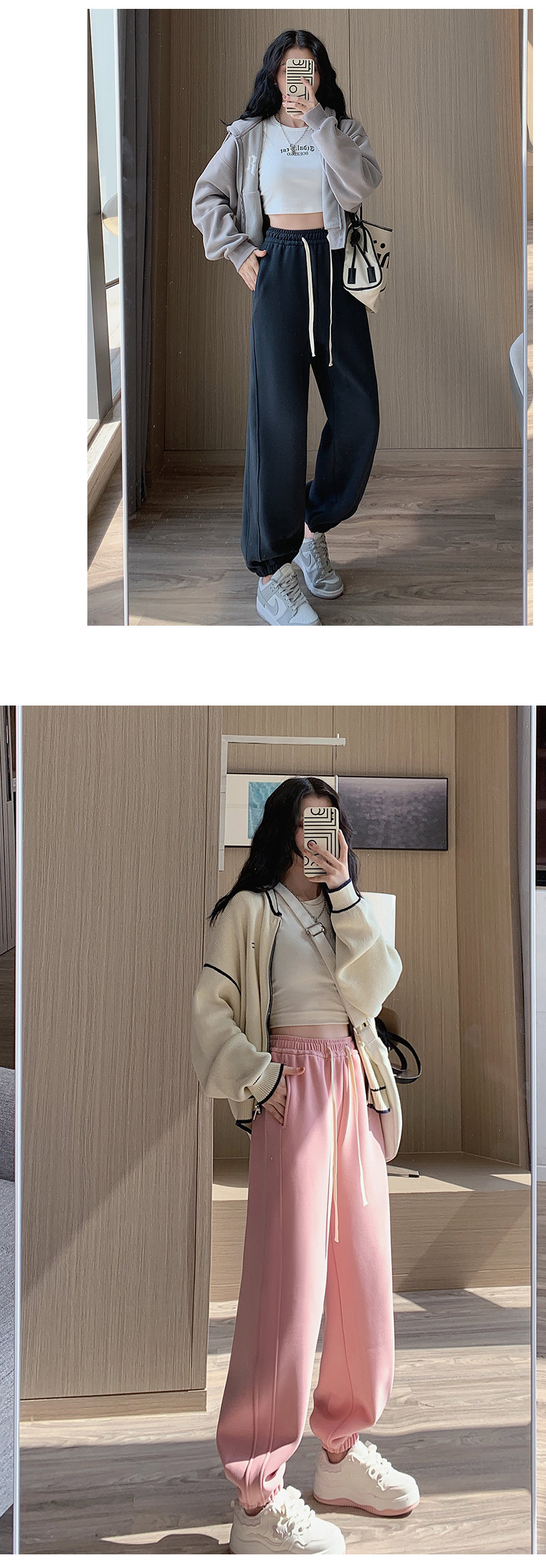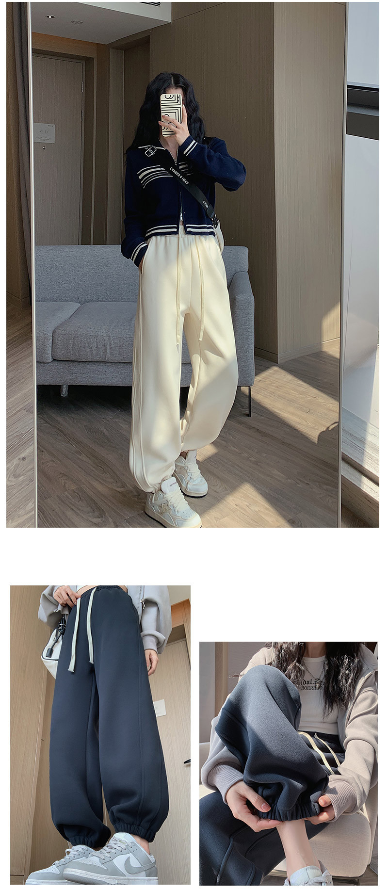 핑크색 플리스 안감 방풍 바지 여성용 봄 가을 2025 신상 루즈핏 캐주얼 스웨트팬츠 발목 조임 두꺼운 하렘 스타일 운동복 바지스토어 가기