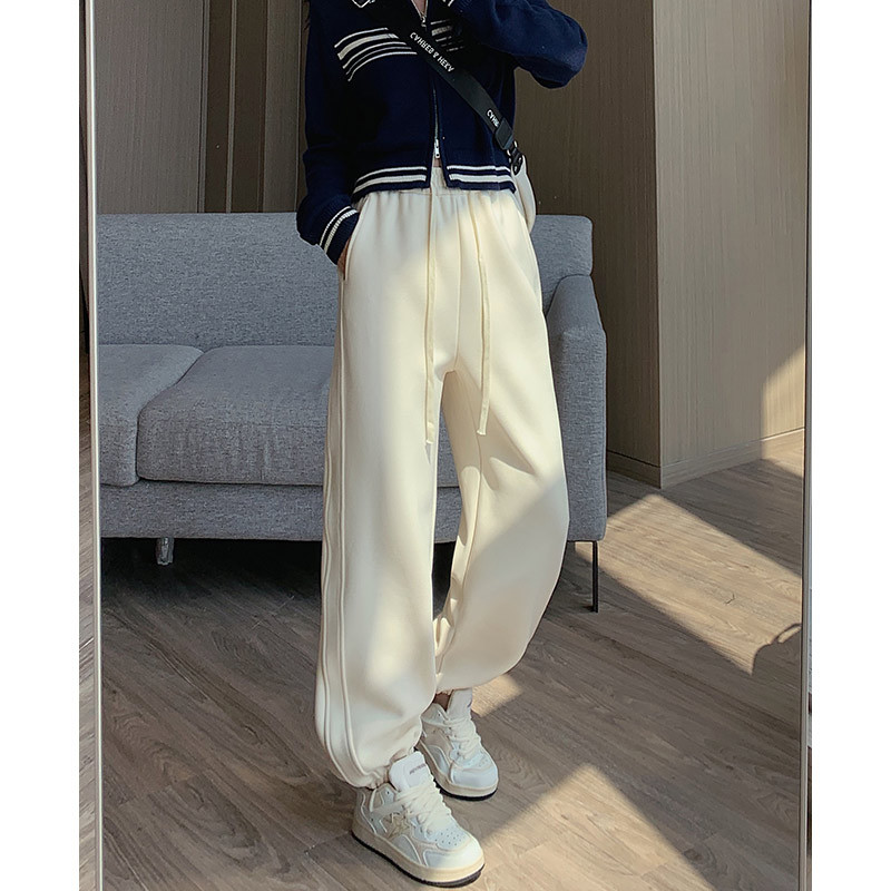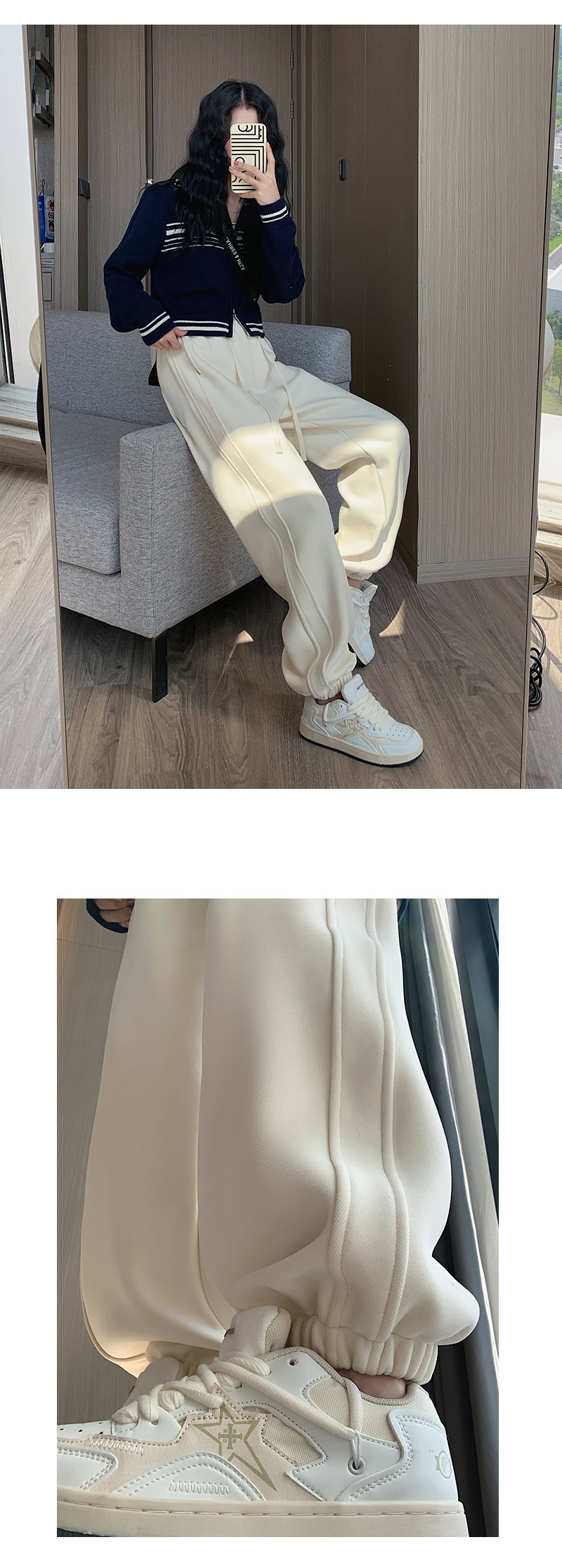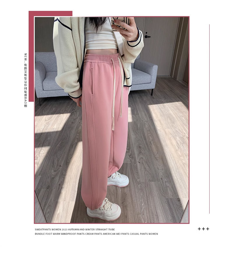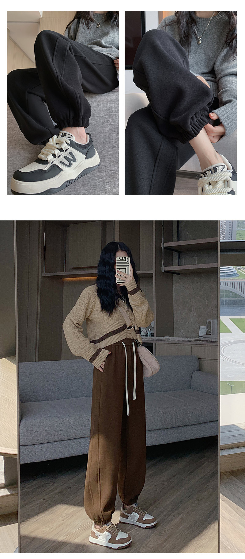 핑크색 플리스 안감 방풍 바지 여성용 봄 가을 2025 신상 루즈핏 캐주얼 스웨트팬츠 발목 조임 두꺼운 하렘 스타일 운동복 바지스토어 가기