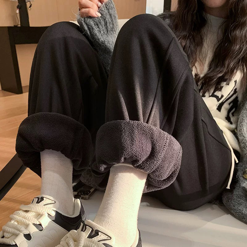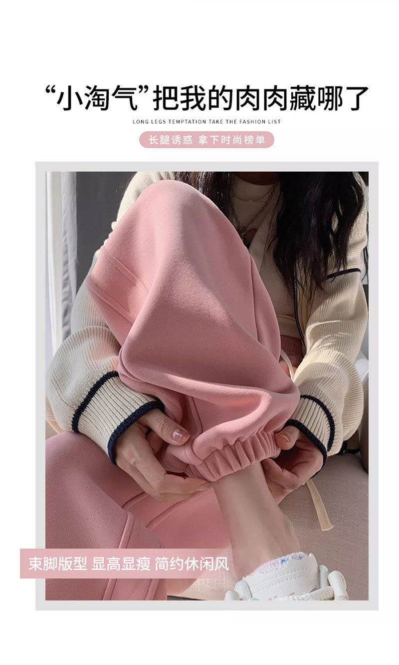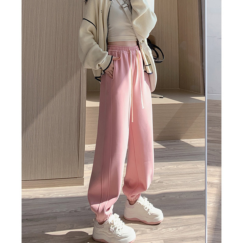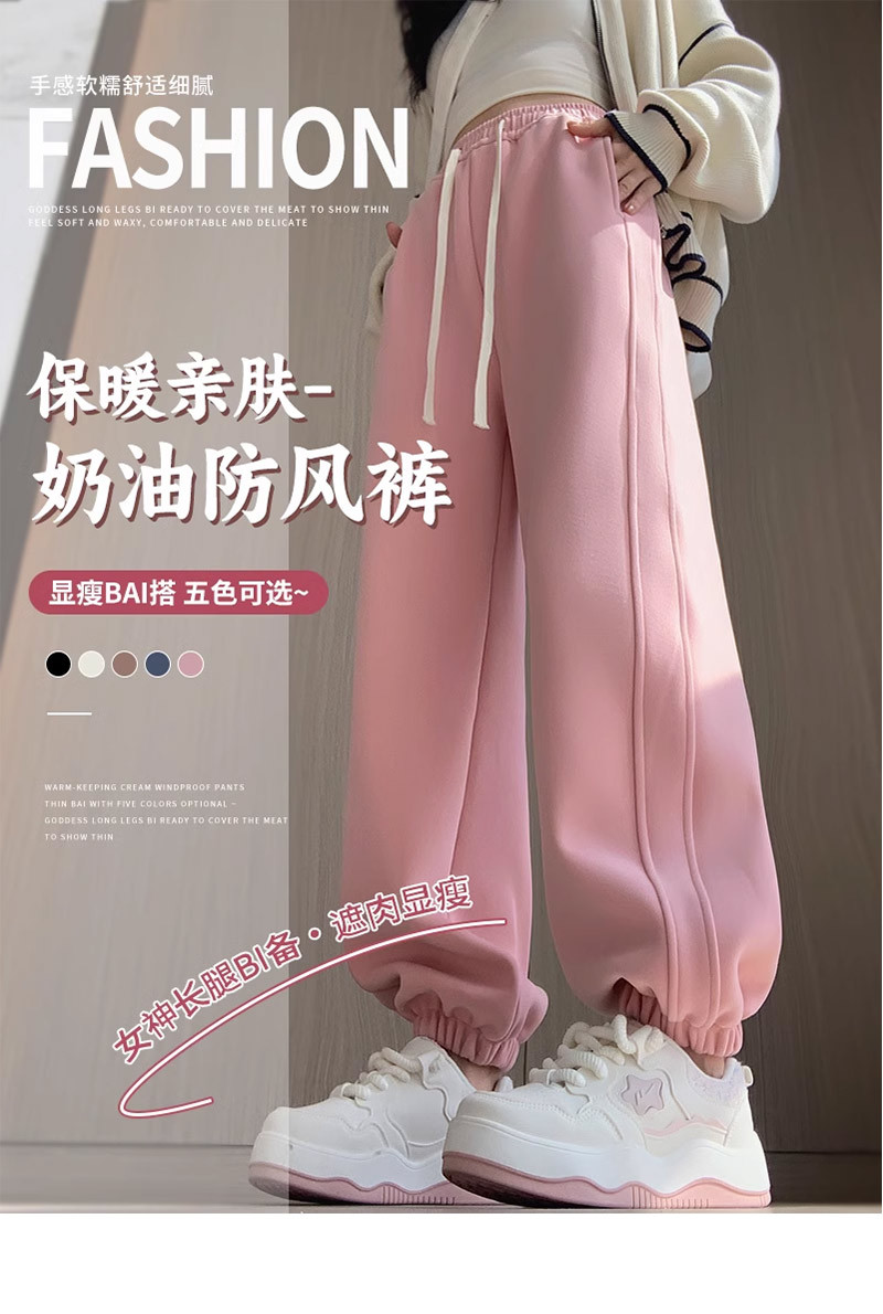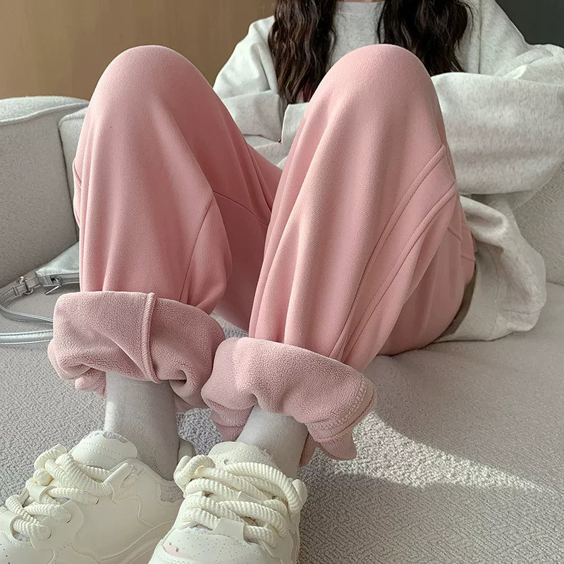 핑크색 플리스 안감 방풍 바지 여성용 봄 가을 2025 신상 루즈핏 캐주얼 스웨트팬츠 발목 조임 두꺼운 하렘 스타일 운동복 바지