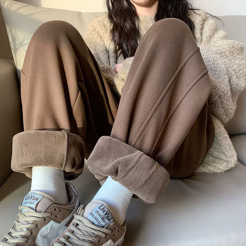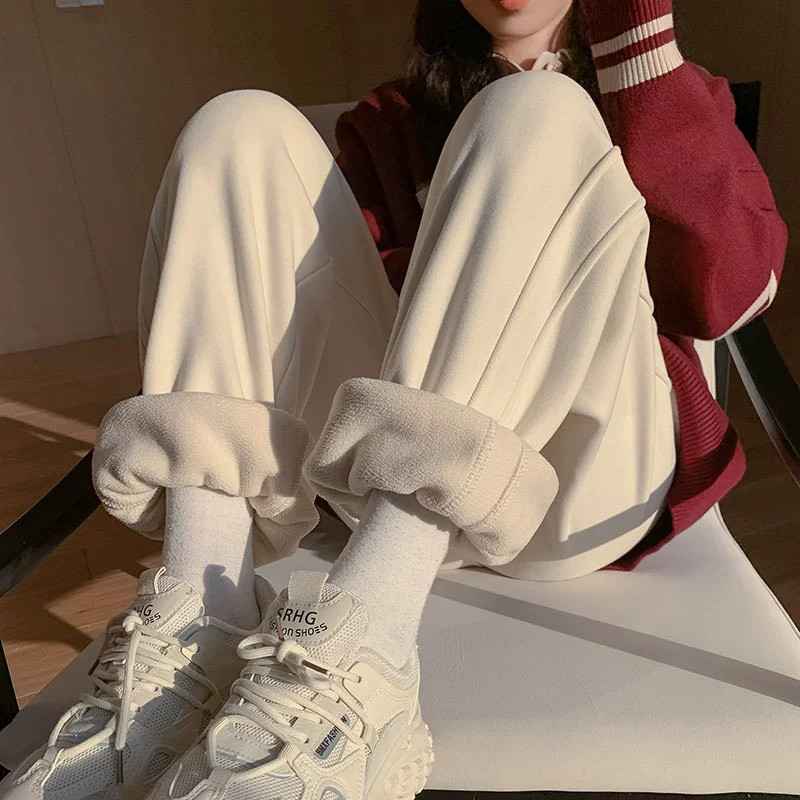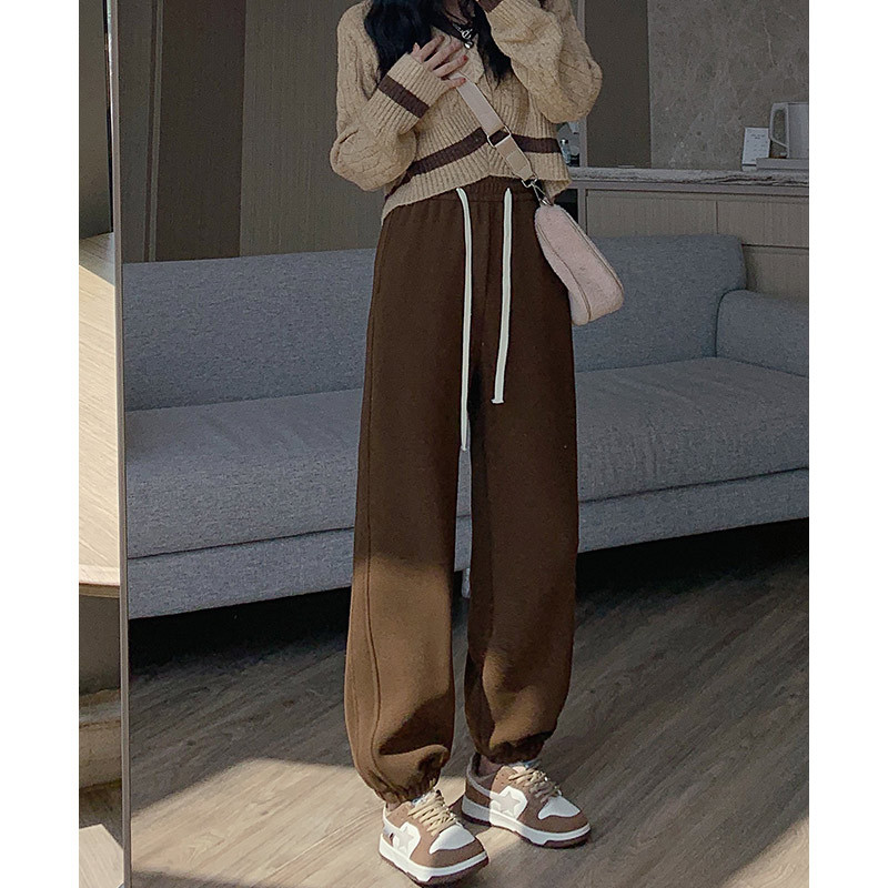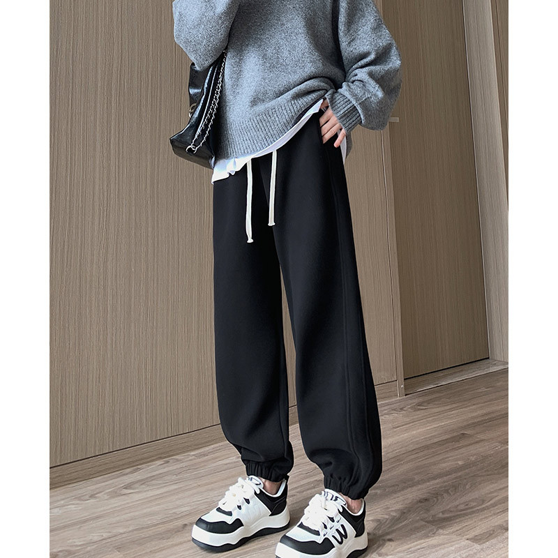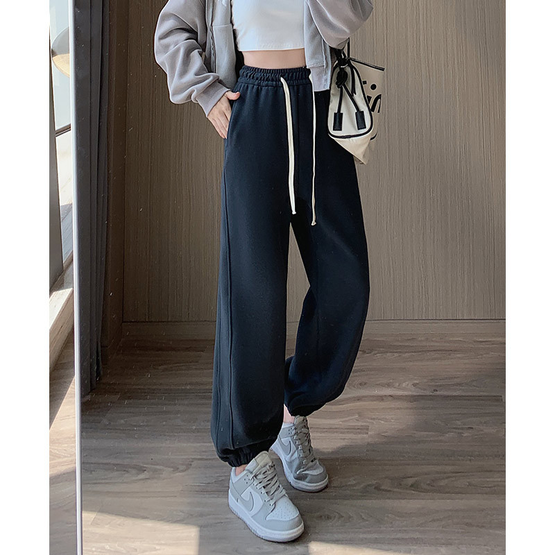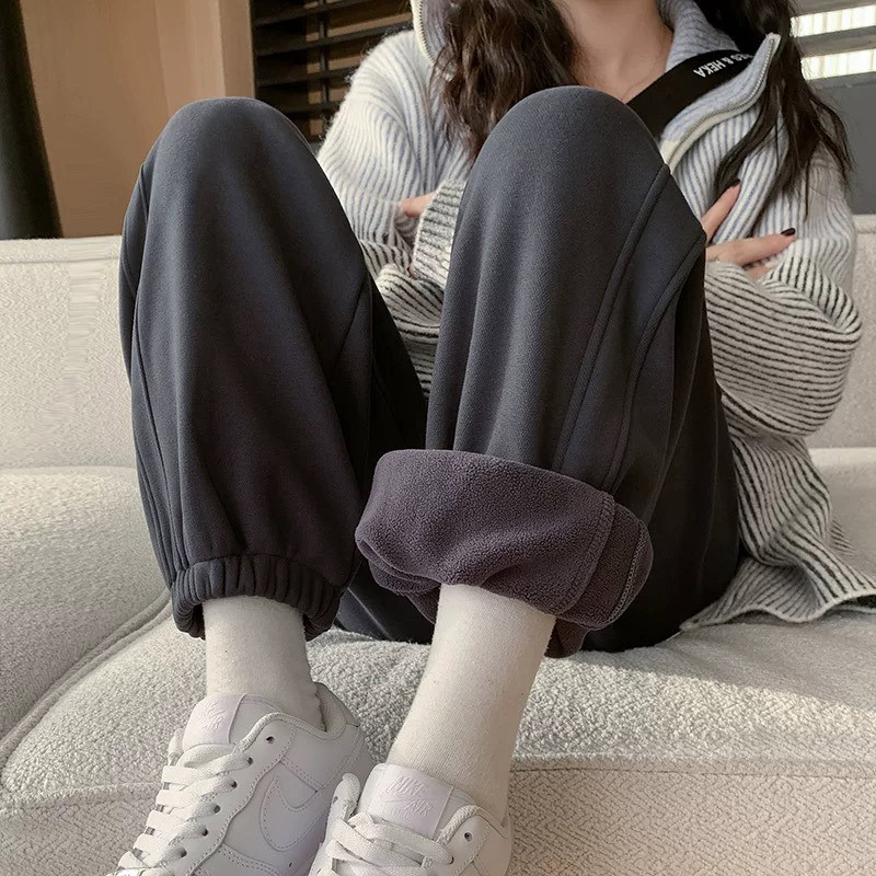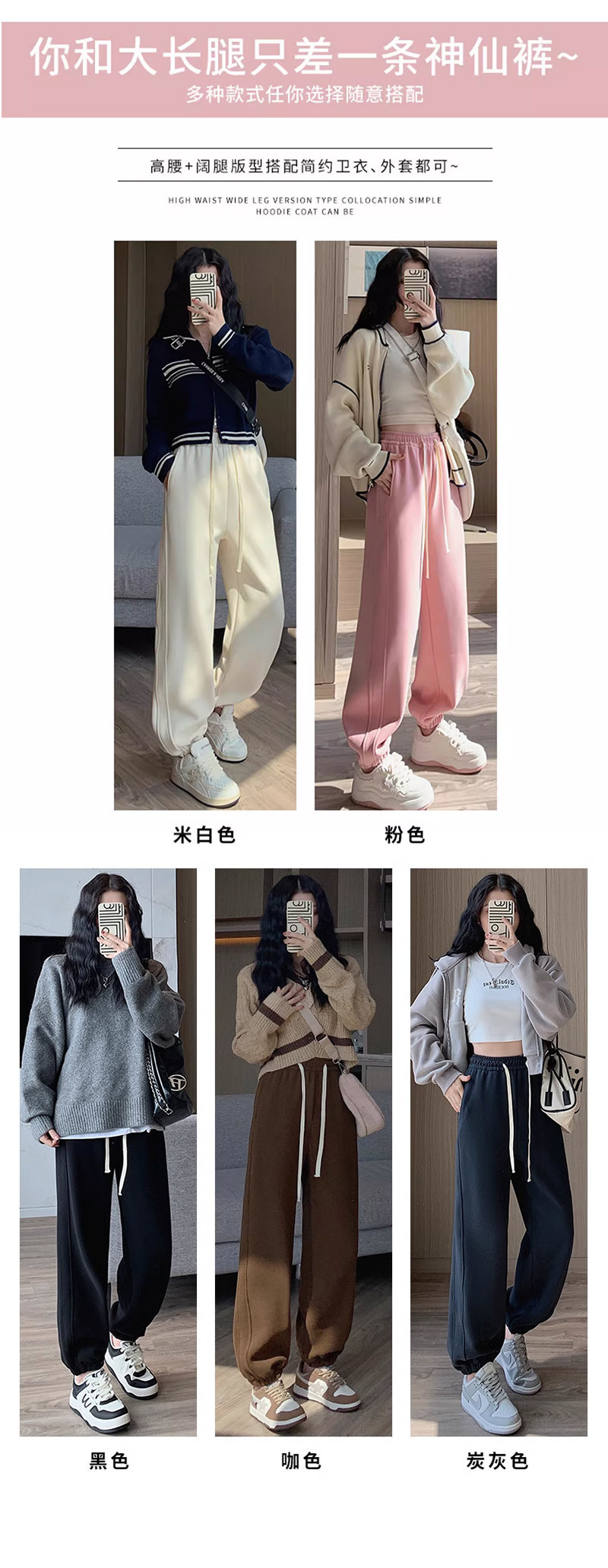 핑크색 플리스 안감 방풍 바지 여성용 봄 가을 2025 신상 루즈핏 캐주얼 스웨트팬츠 발목 조임 두꺼운 하렘 스타일 운동복 바지