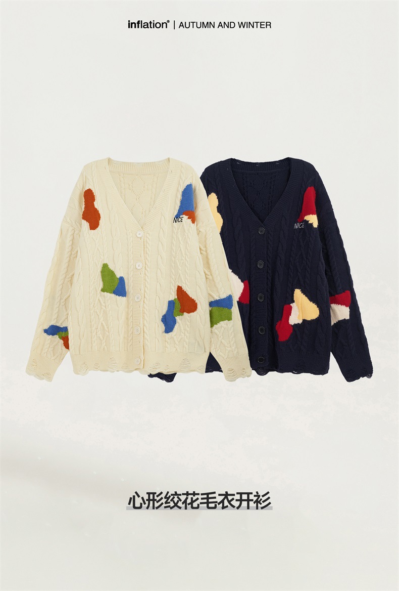 INF 남성복 | 하트 모양 케이블 니트 가디건 2025 가을 겨울 신상 트렌디 브랜드 루즈핏 커플 니트 상의스토어 가기