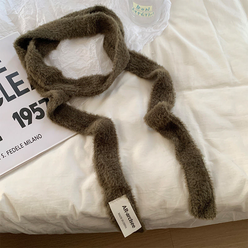 한국 단색 얇은 좁은 긴 Y2k 봉제 얇은 스카프 여성의 뜨거운 소녀는 세련된 긴 니트 스카프 장식을 착용합니다.스토어 가기