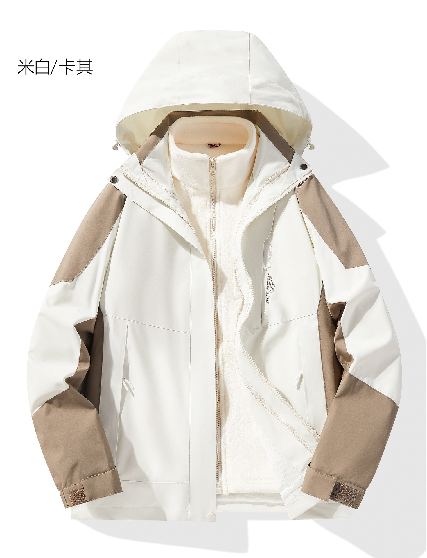 여성용 두꺼운 방풍 및 방수 등산 자켓을 기모 가을과 겨울 남성 3 대 1 탈착식 2 피스 세트스토어 가기