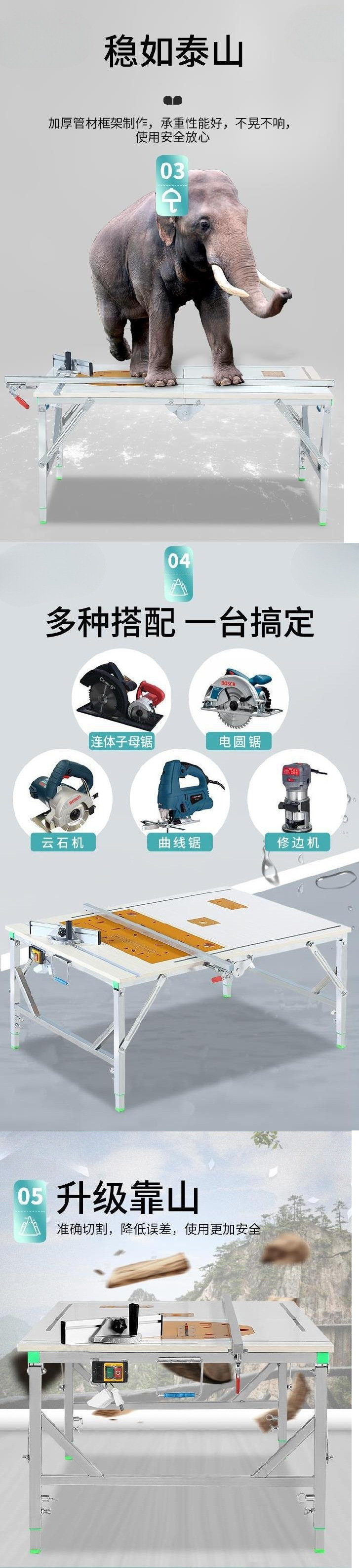 • 80*120 두꺼워지고 강화된 5-in-1 무분해 톱 모델