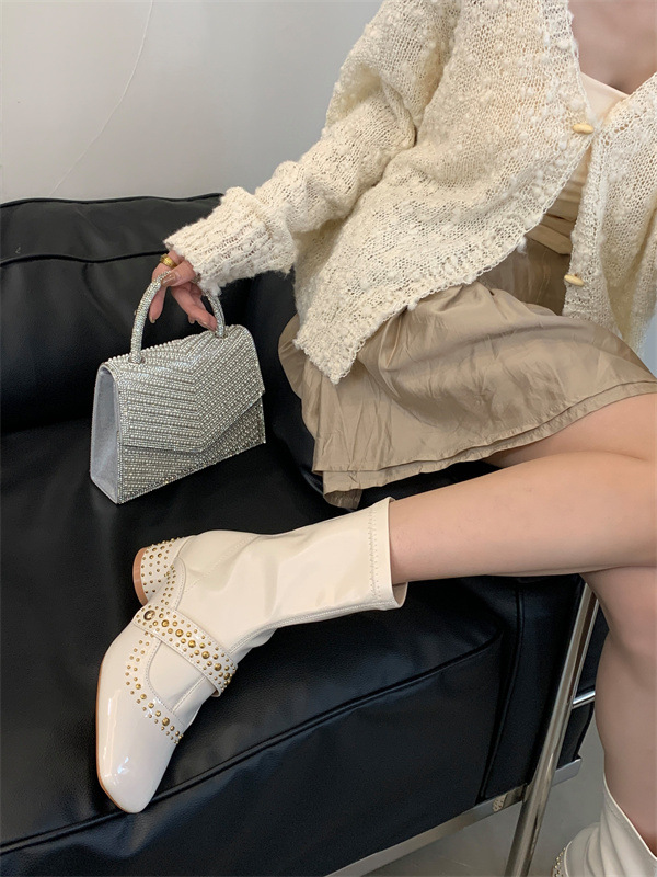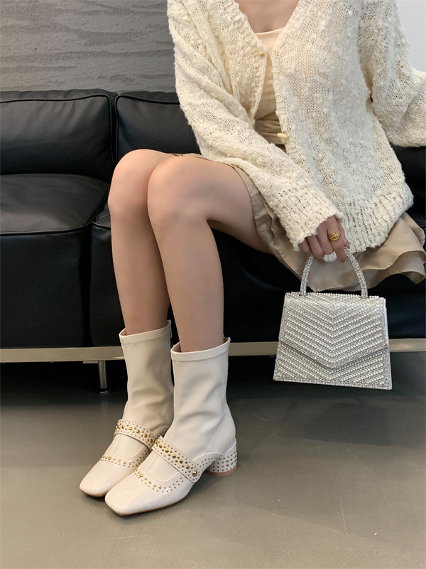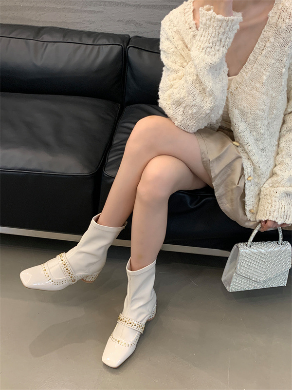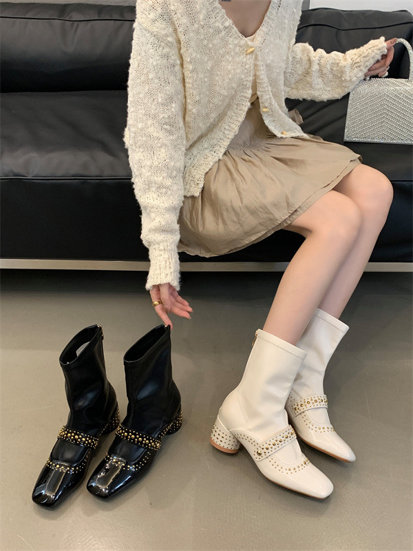 소가죽 버전 ~ 인터넷 연예인 슈퍼 핫 스트레치 슬림 부츠 여성 2024 가을 겨울 신상 두꺼운 굽 다용도 기질 숏부츠스토어 가기