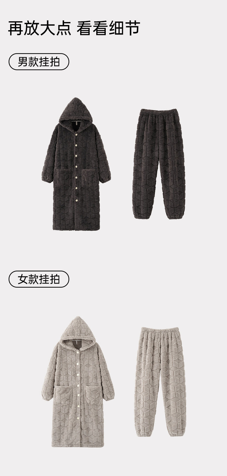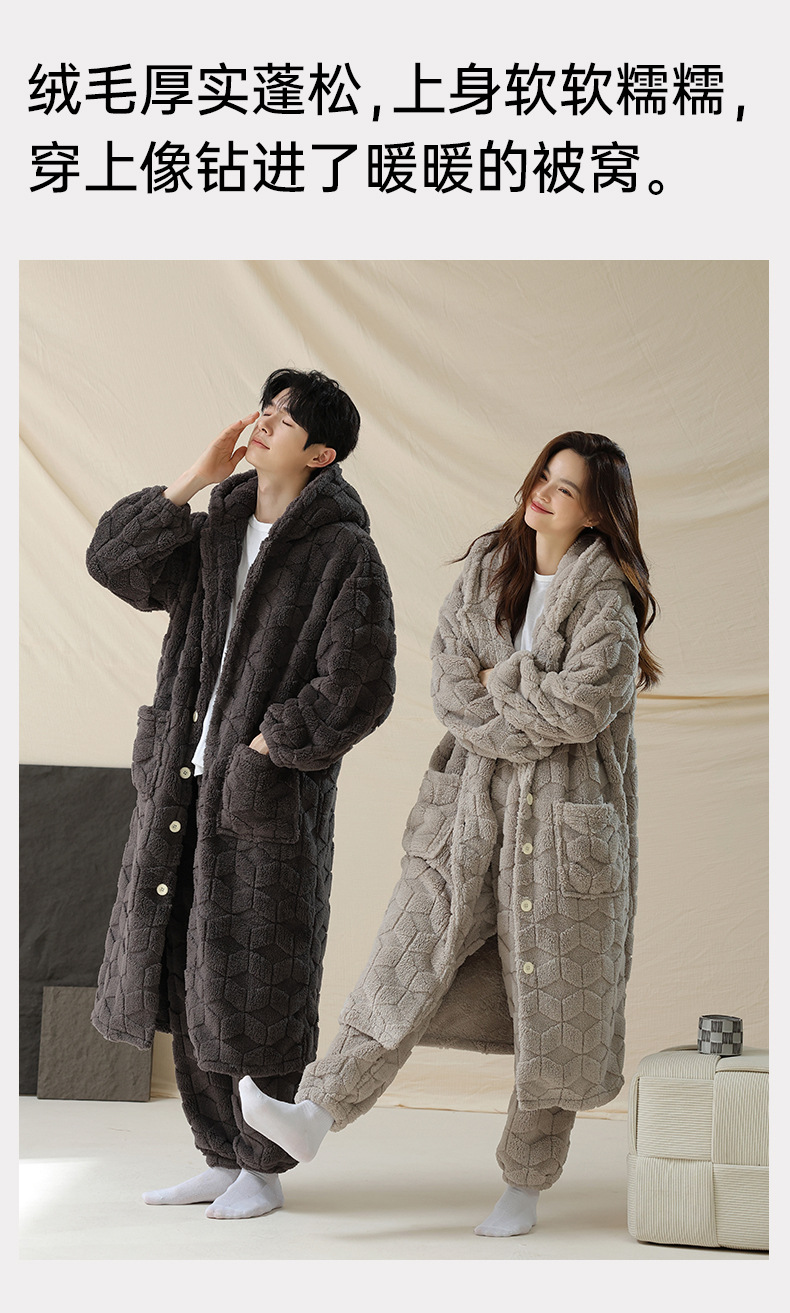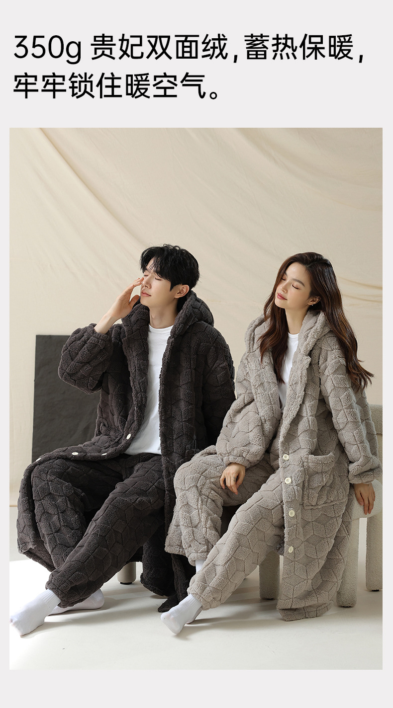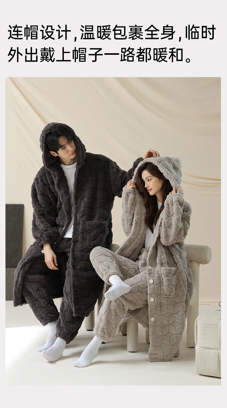 [양면 벨벳] 겨울 커플 파자마 여성용 로브 후드 코랄 플리스 재킷 남자 홈 의류 세트스토어 가기