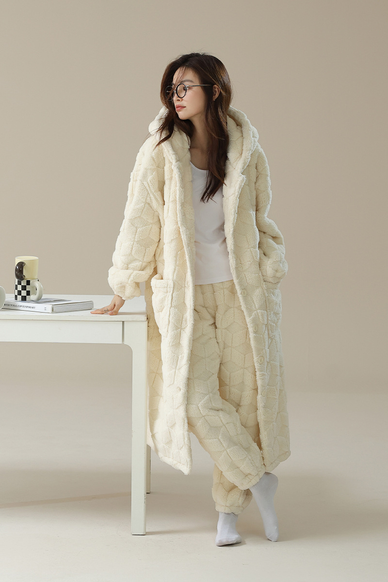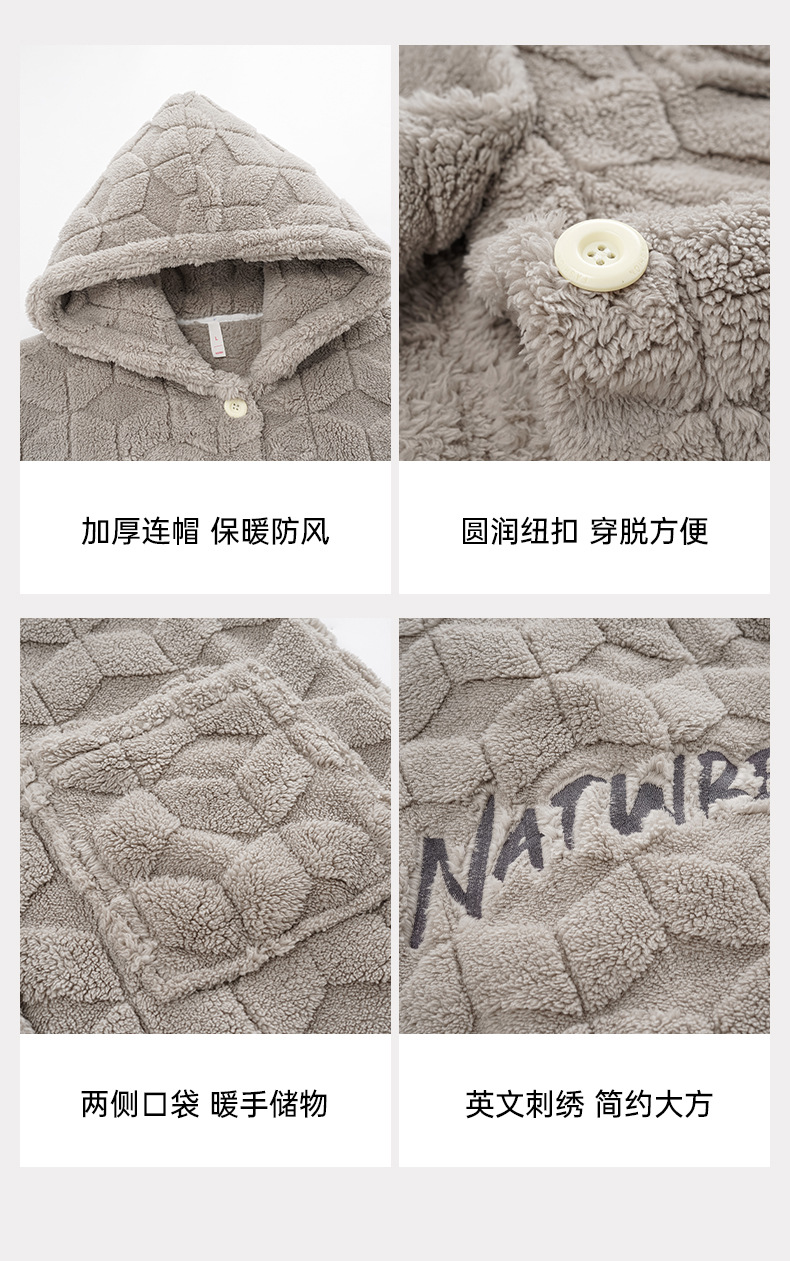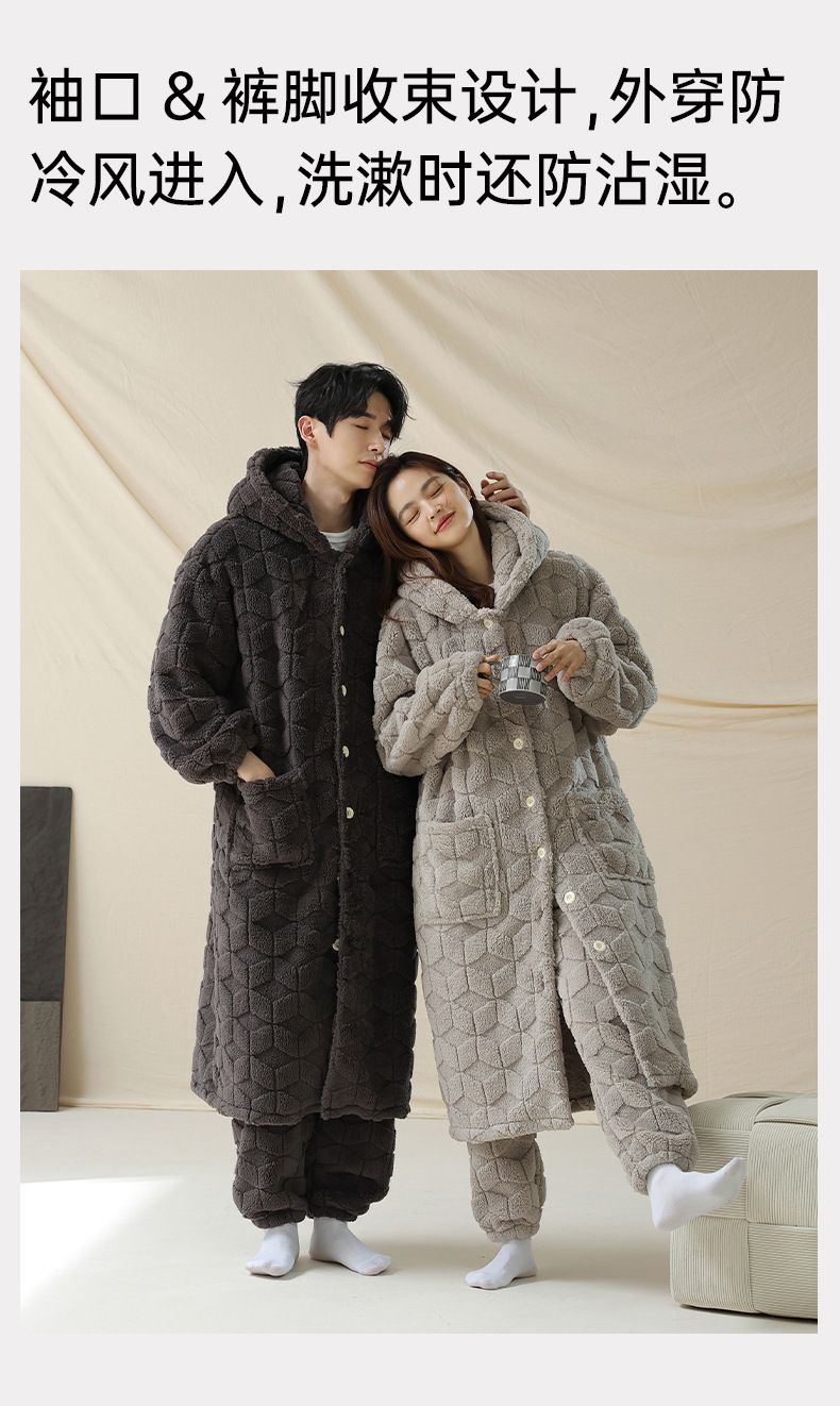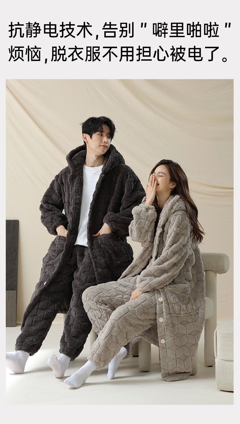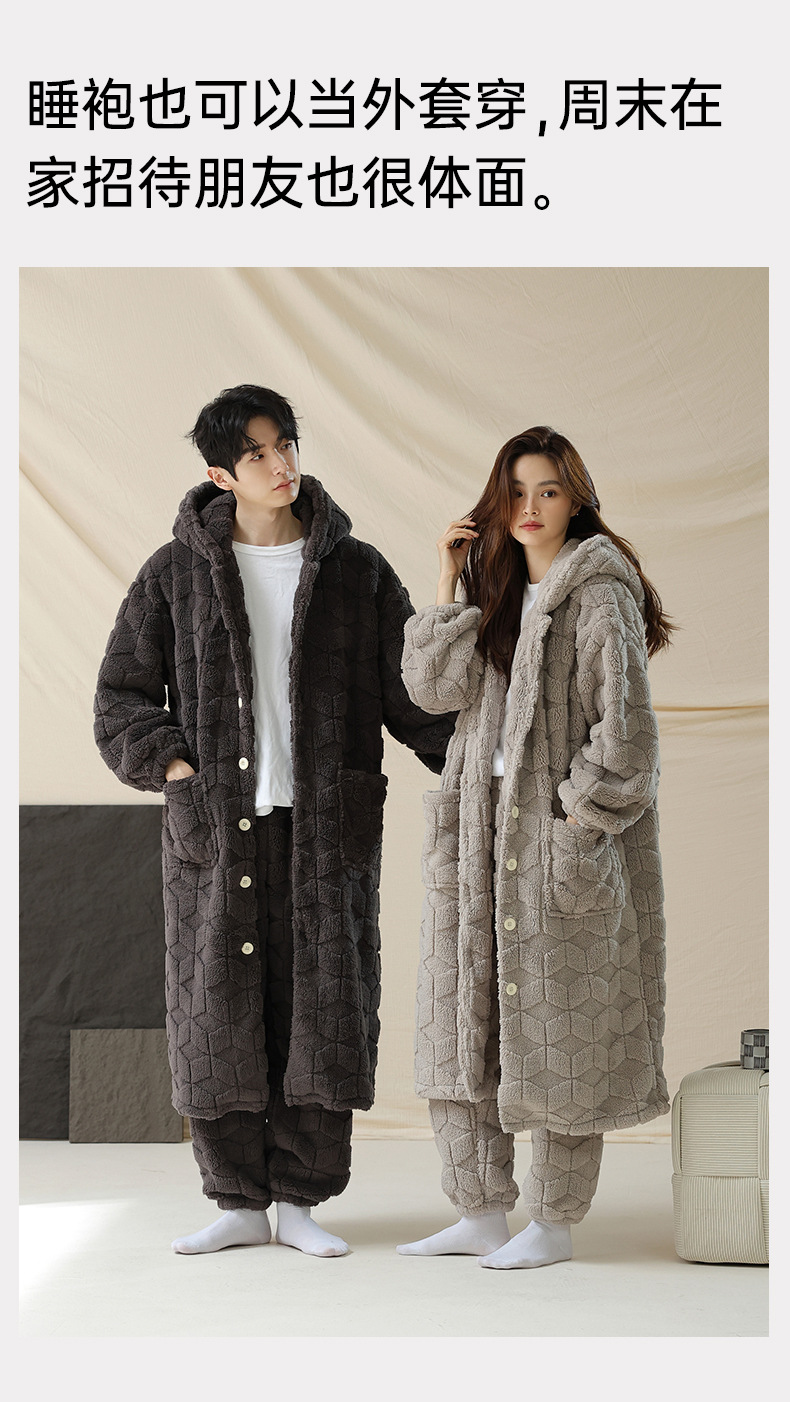 [양면 벨벳] 겨울 커플 파자마 여성용 로브 후드 코랄 플리스 재킷 남자 홈 의류 세트스토어 가기