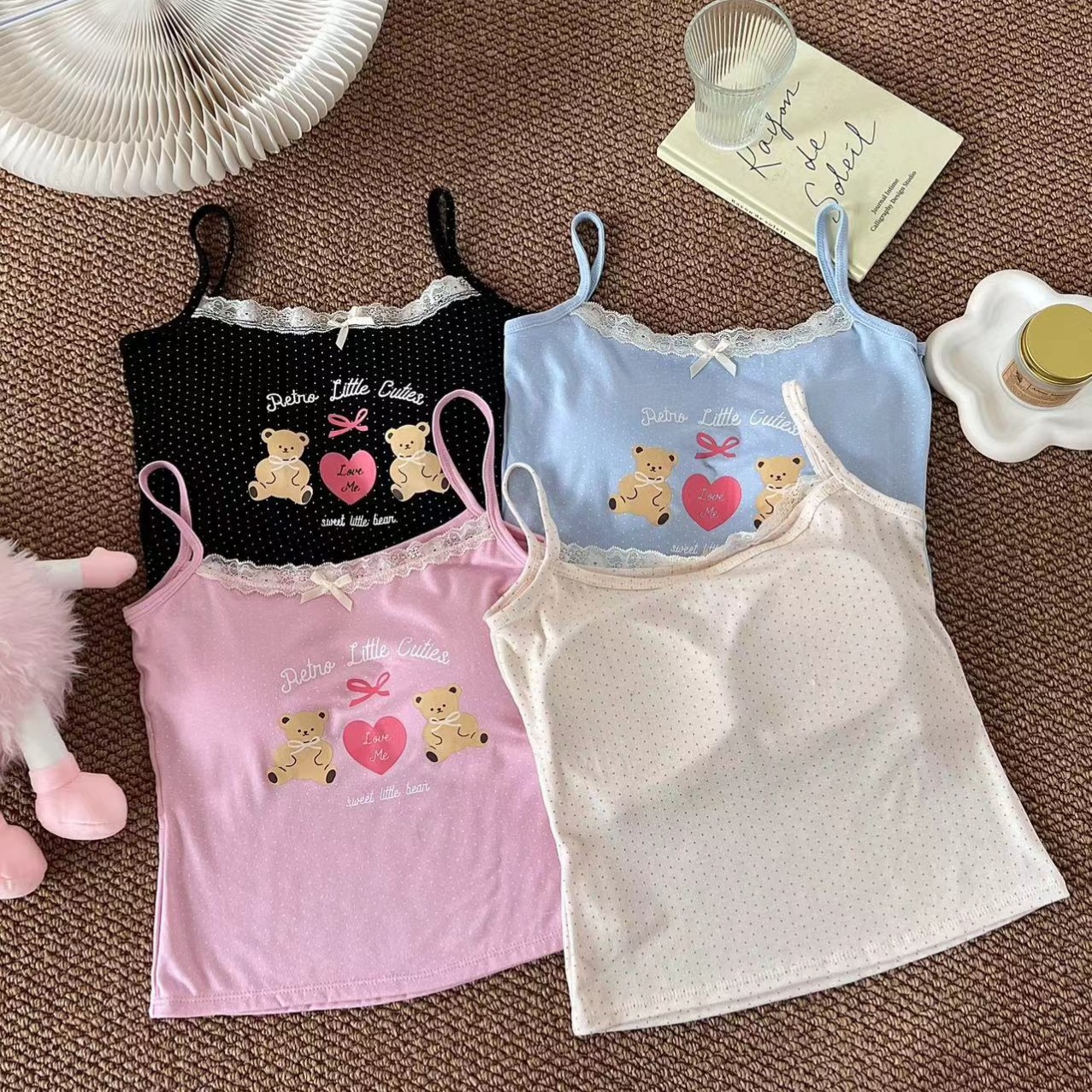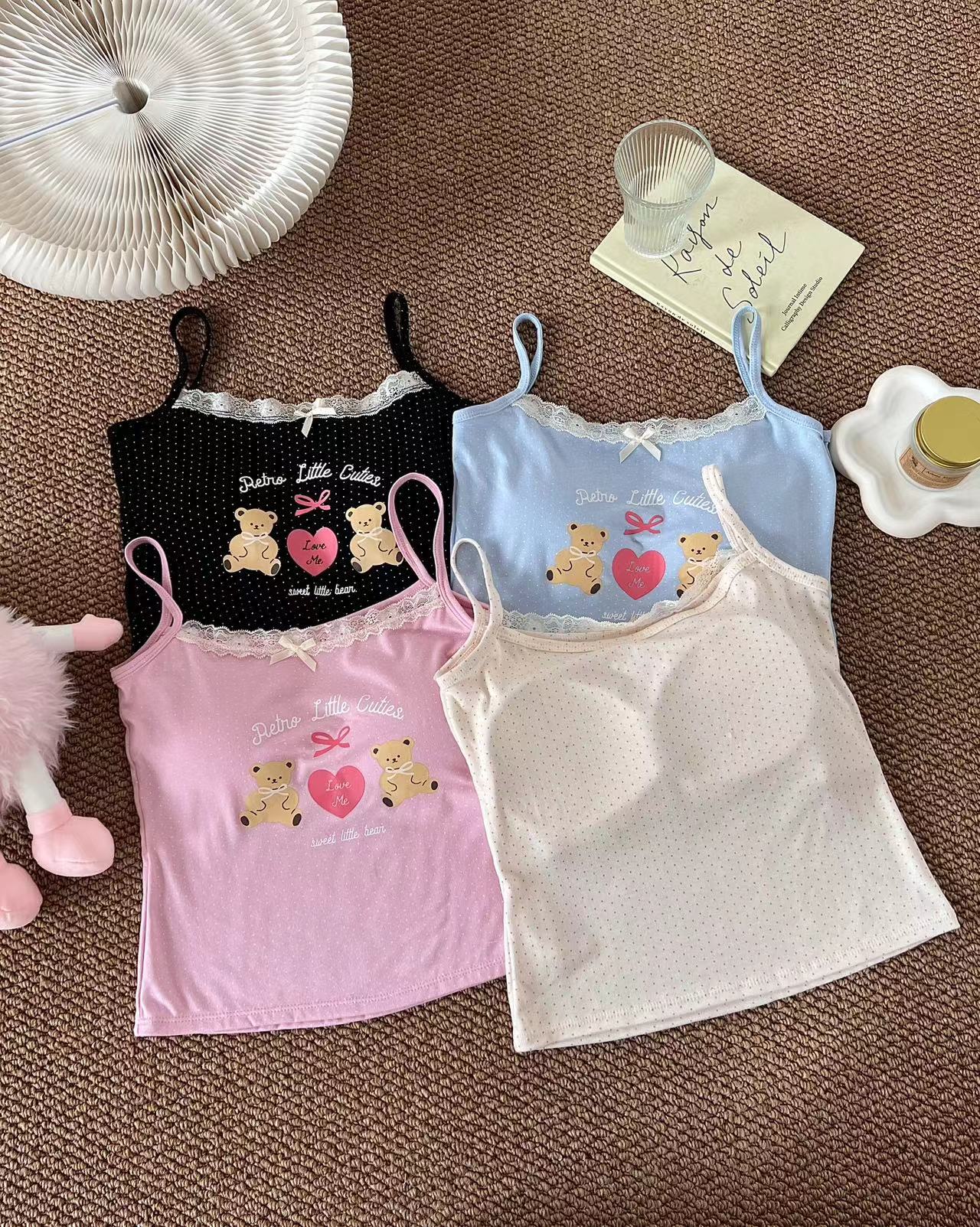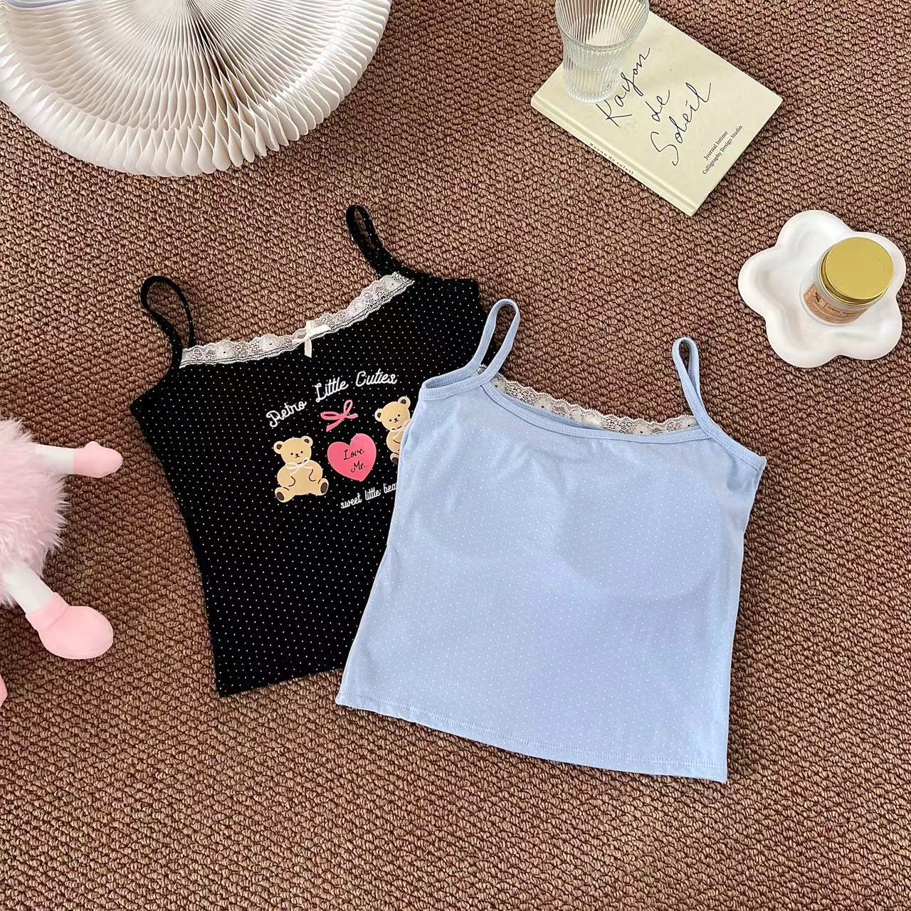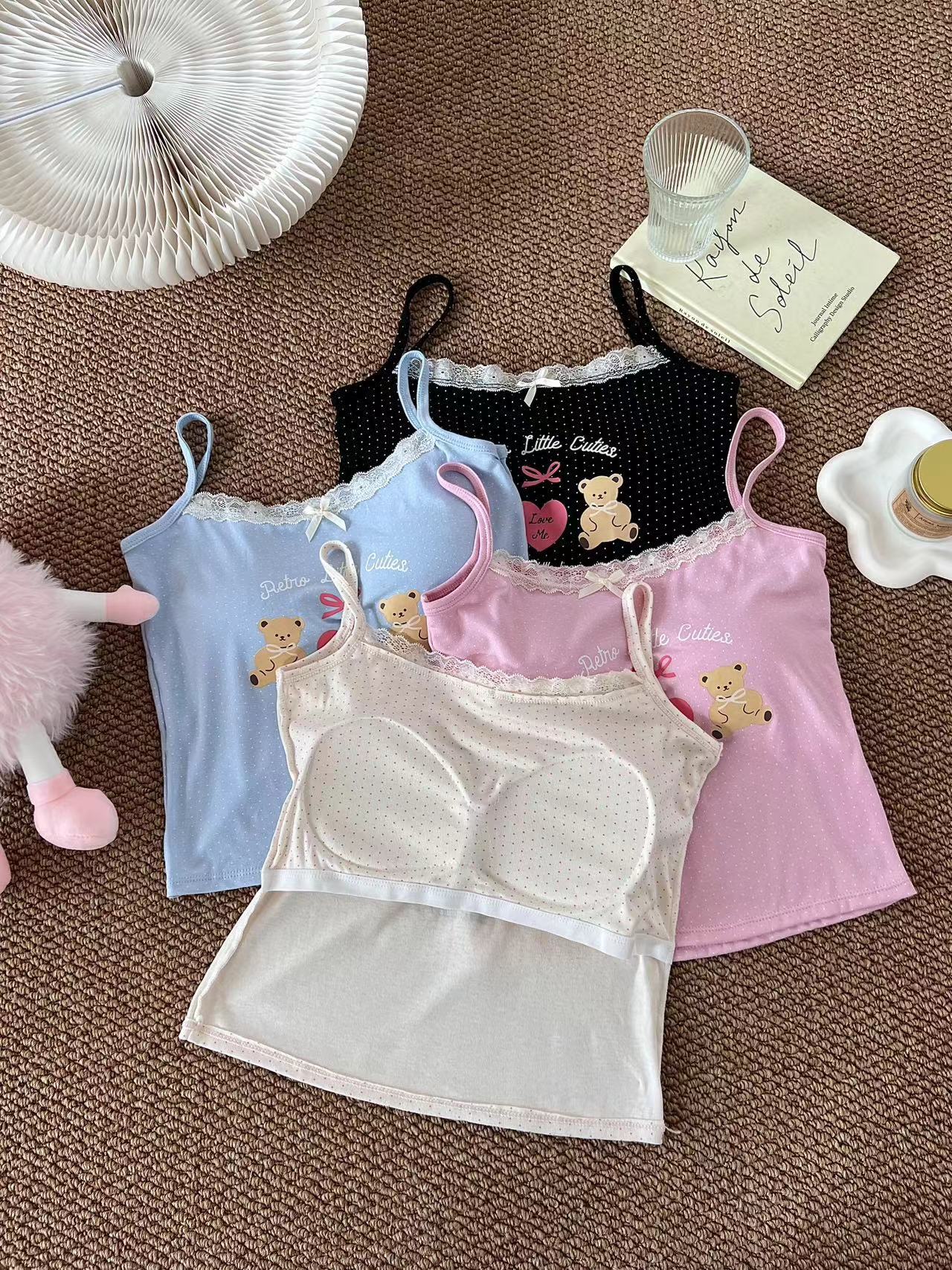 H334: 레이온 도파민 귀여운 프린트 콘돌 스트랩 레이스 조끼 여성의 내부 스트랩 가슴 패드 핫 걸스토어 가기