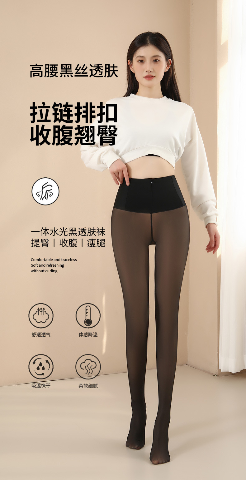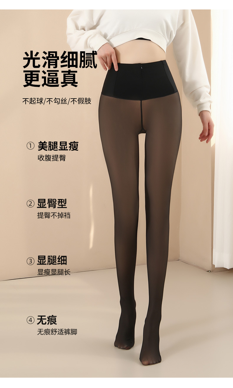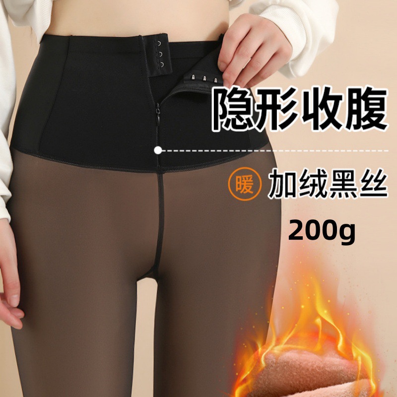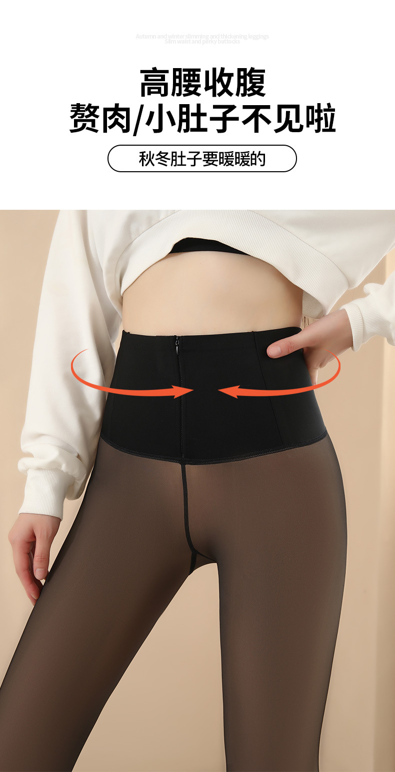 높은 허리 지퍼 배꼽 투킹 가짜 살수 빛 양말 여성의 가을과 겨울 기모 두꺼운 따뜻한 다리 조향 검은 실크 양말 바지