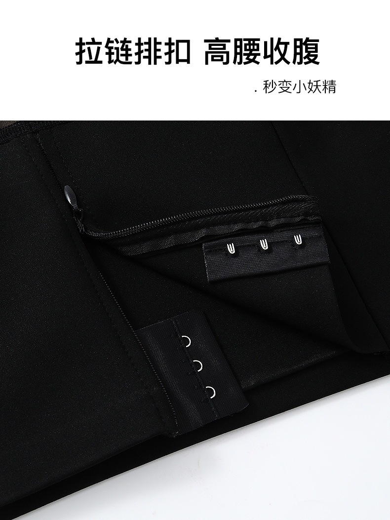 • [하이웨이스트 뱃살 조절 히든 지퍼 버튼 블랙 실크 워터리 반투명 올인원 팬츠] [프리사이즈]【 40-70kg 】