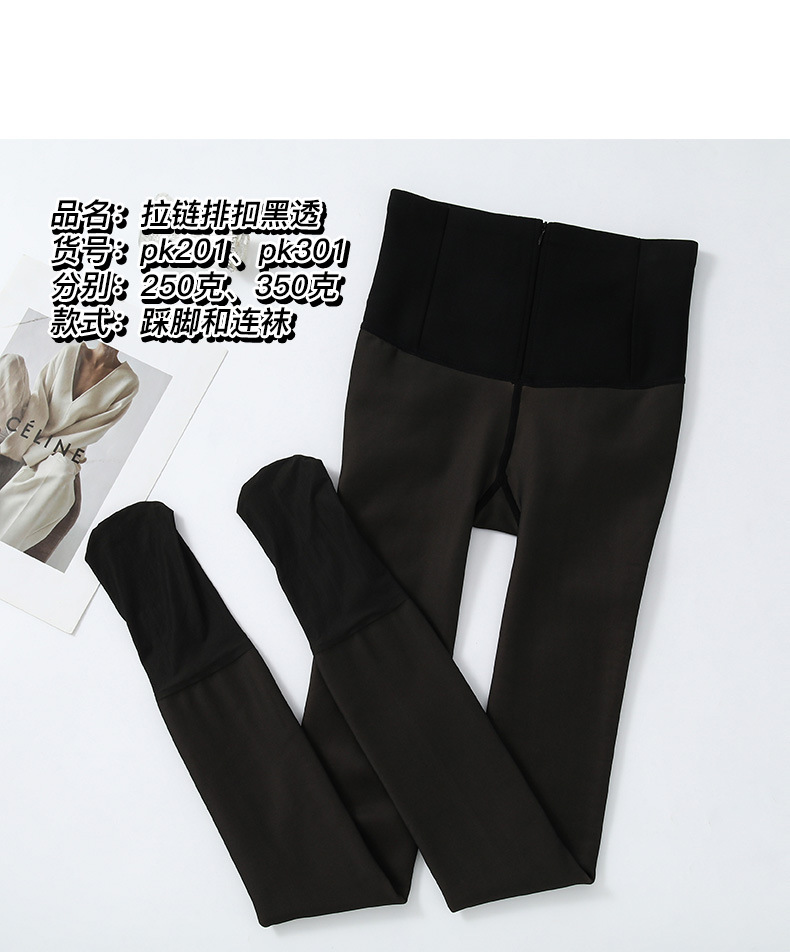 높은 허리 지퍼 배꼽 투킹 가짜 살수 빛 양말 여성의 가을과 겨울 기모 두꺼운 따뜻한 다리 조향 검은 실크 양말 바지스토어 가기