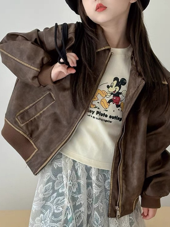 소녀 코트 가을 2024 새로운 스타일 어린이 유행 가죽 코트 봄과 가을 소녀 가을 재킷 최고 유행스토어 가기