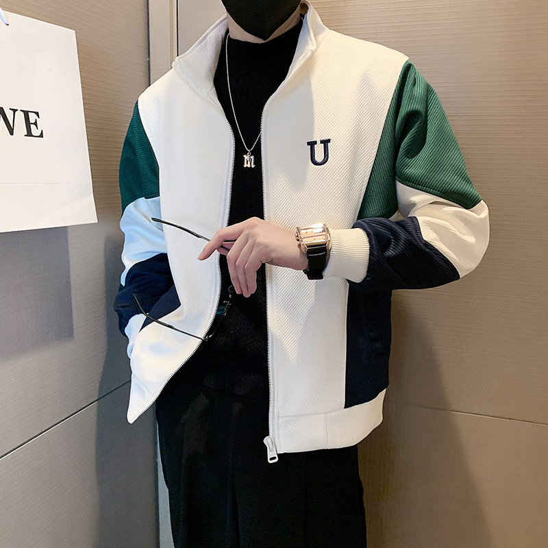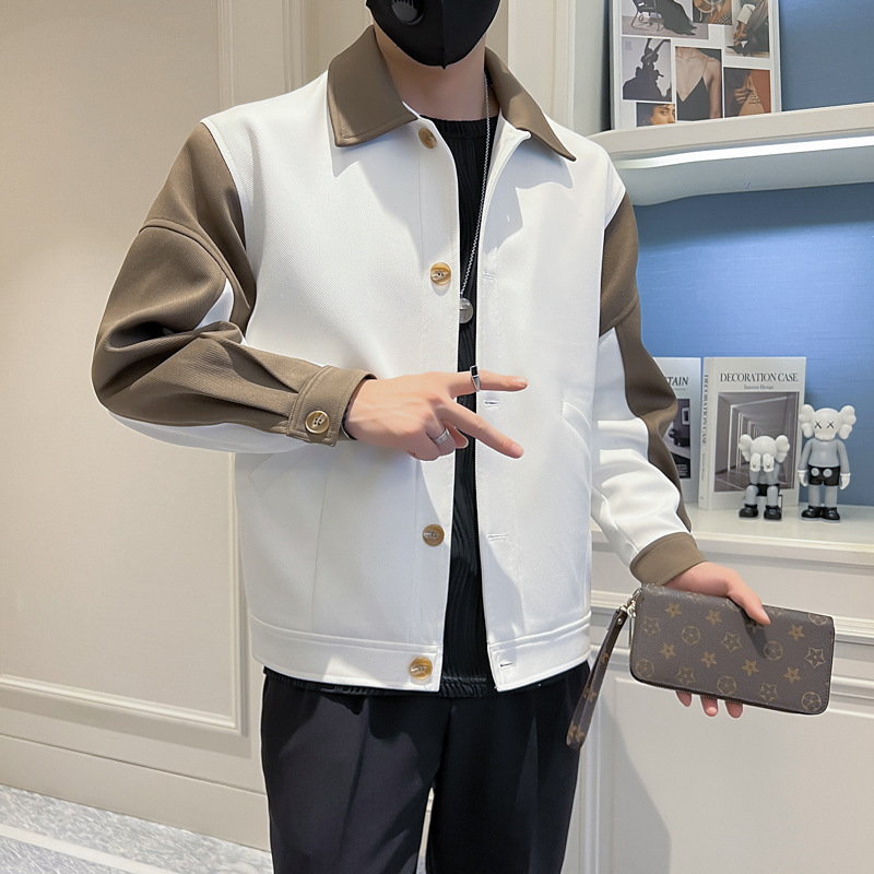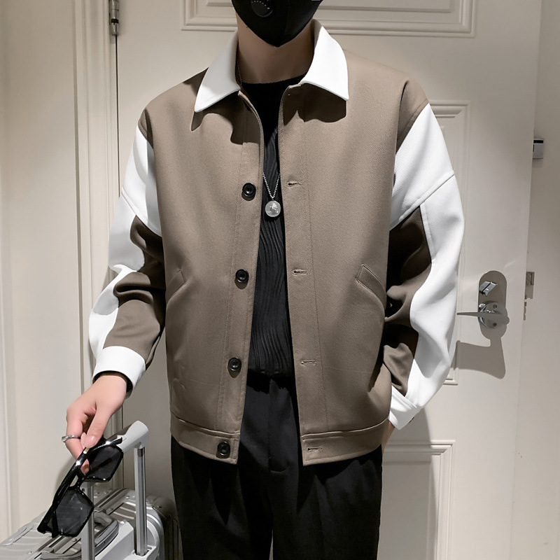 남자 봄과 가을 새로운 유행 브랜드 남자 하이 엔드 센스 탑 한국 남자 옷깃 컬러 매칭 세트 재킷스토어 가기