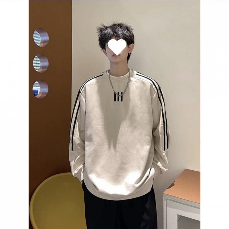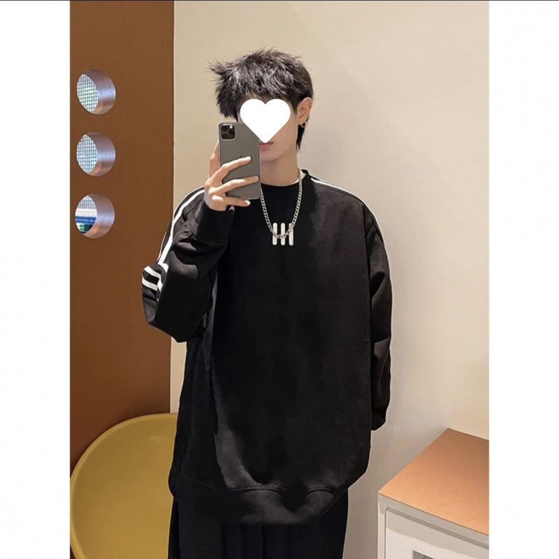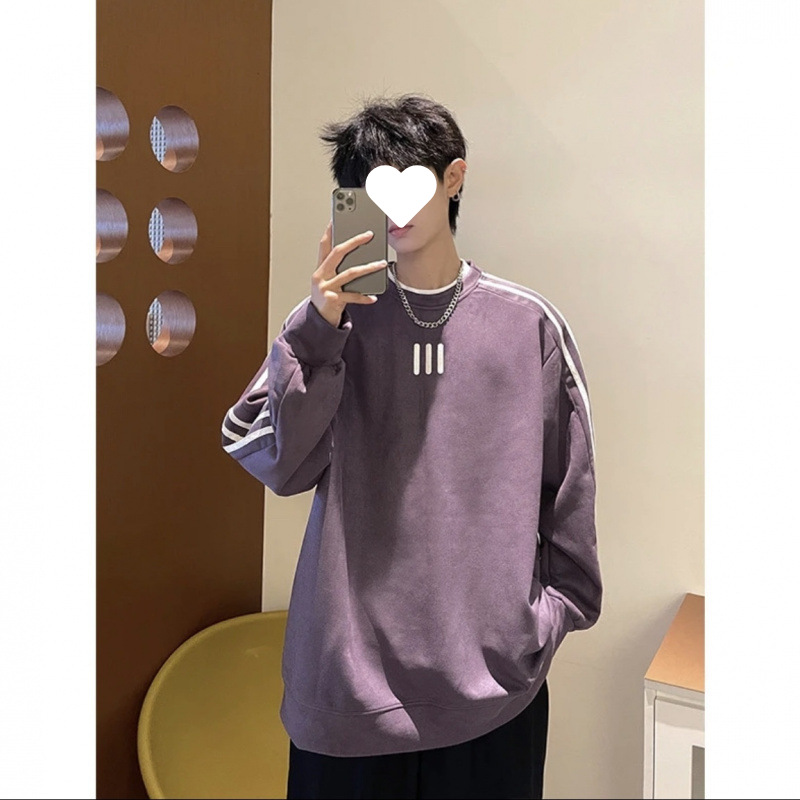 春秋百搭卫衣男士拼接刺绣美式复古风休闲长袖圆领梅紫色上衣宽松스토어 가기
