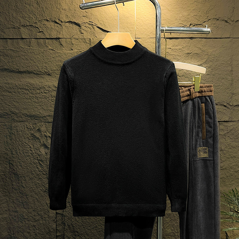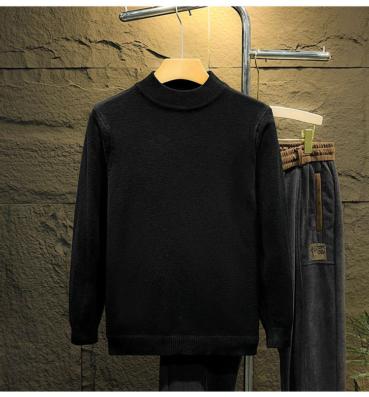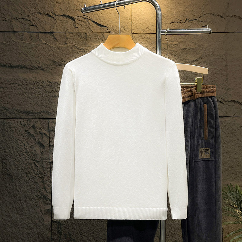 둥근 목 솔리드 컬러 스웨터 가을과 겨울 남자의 따뜻한 슬림 핏 올 매치 스웨터 유행 간단한 풀오버 베이스 따뜻한 옷스토어 가기