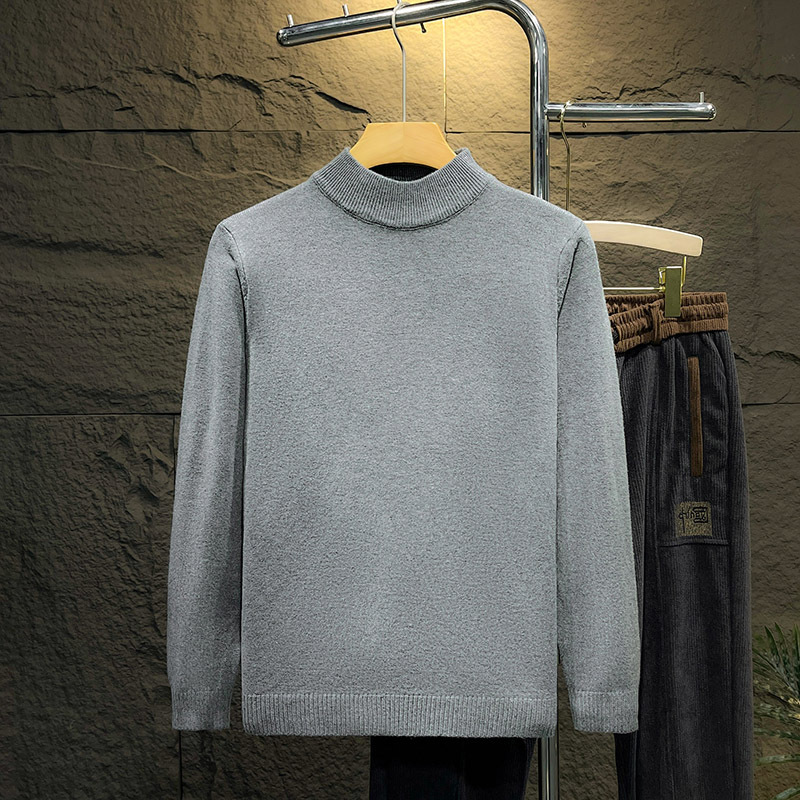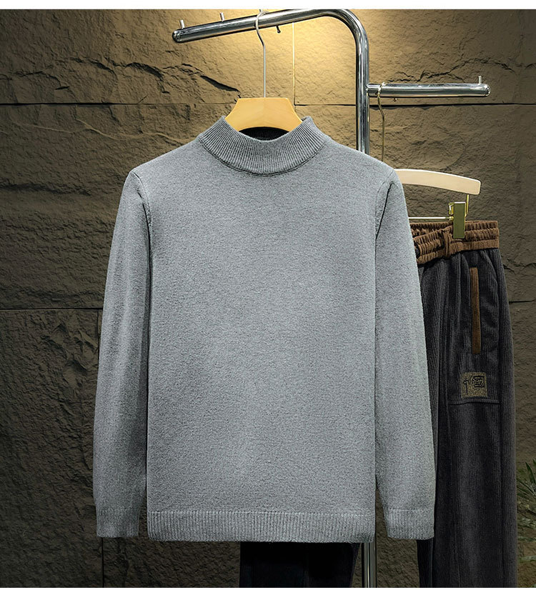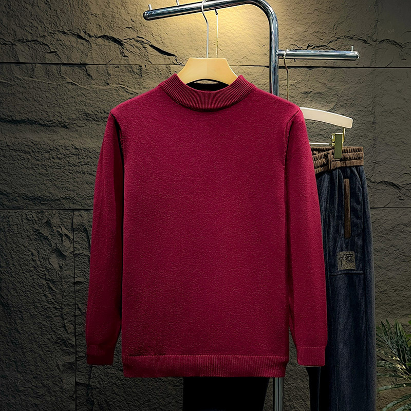 둥근 목 솔리드 컬러 스웨터 가을과 겨울 남자의 따뜻한 슬림 핏 올 매치 스웨터 유행 간단한 풀오버 베이스 따뜻한 옷