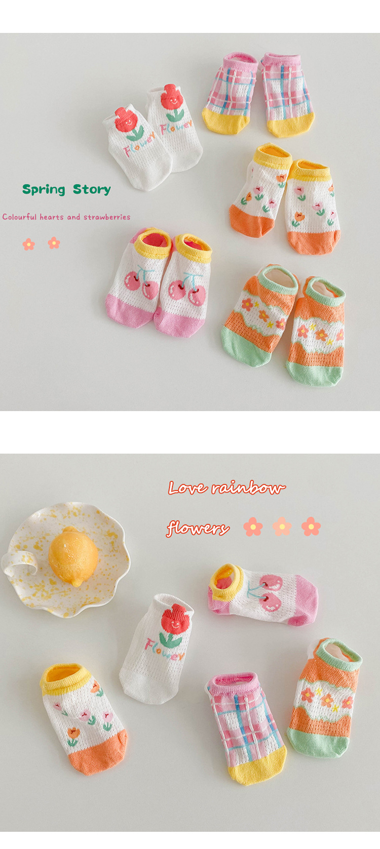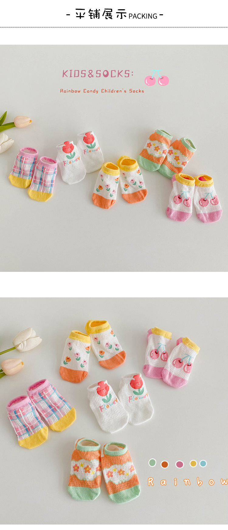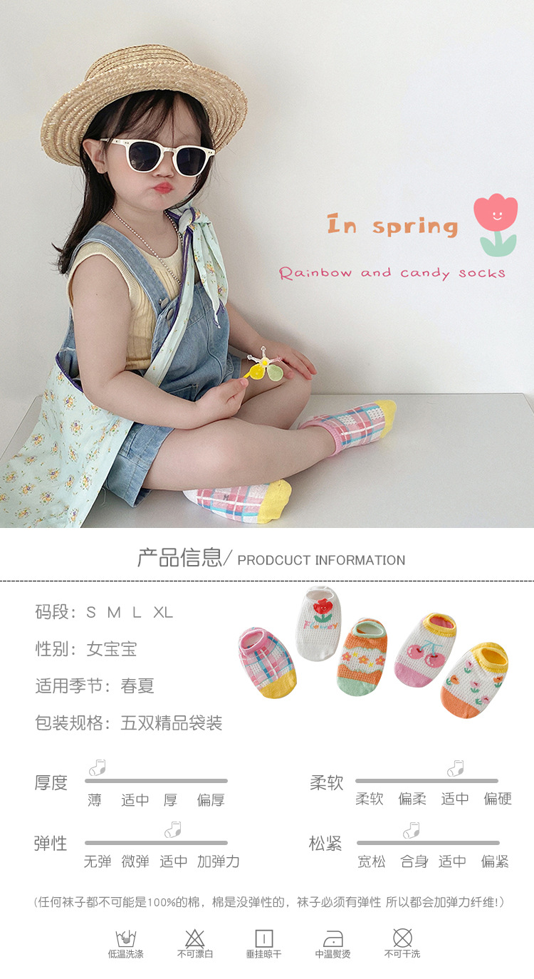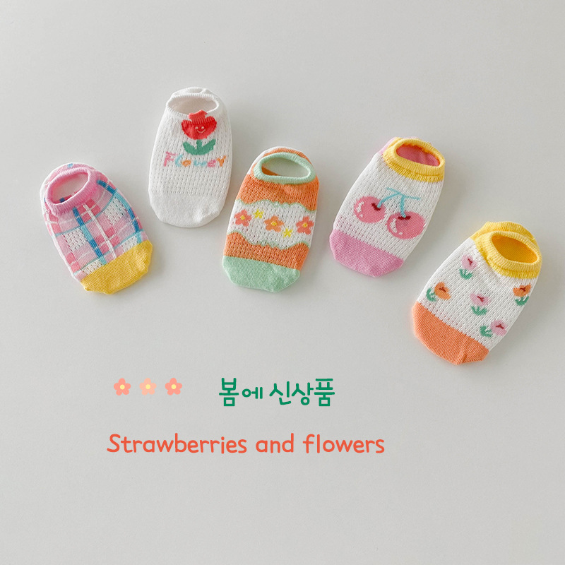 소녀 양말 봄과 여름 메쉬 양말 어린이 한국 만화 작은 꽃 보트 양말 아기 통기성 보이지 않는 양말 제조 업체 도매