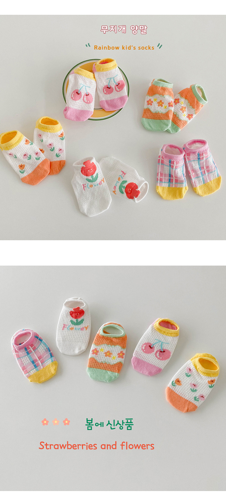 소녀 양말 봄과 여름 메쉬 양말 어린이 한국 만화 작은 꽃 보트 양말 아기 통기성 보이지 않는 양말 제조 업체 도매스토어 가기