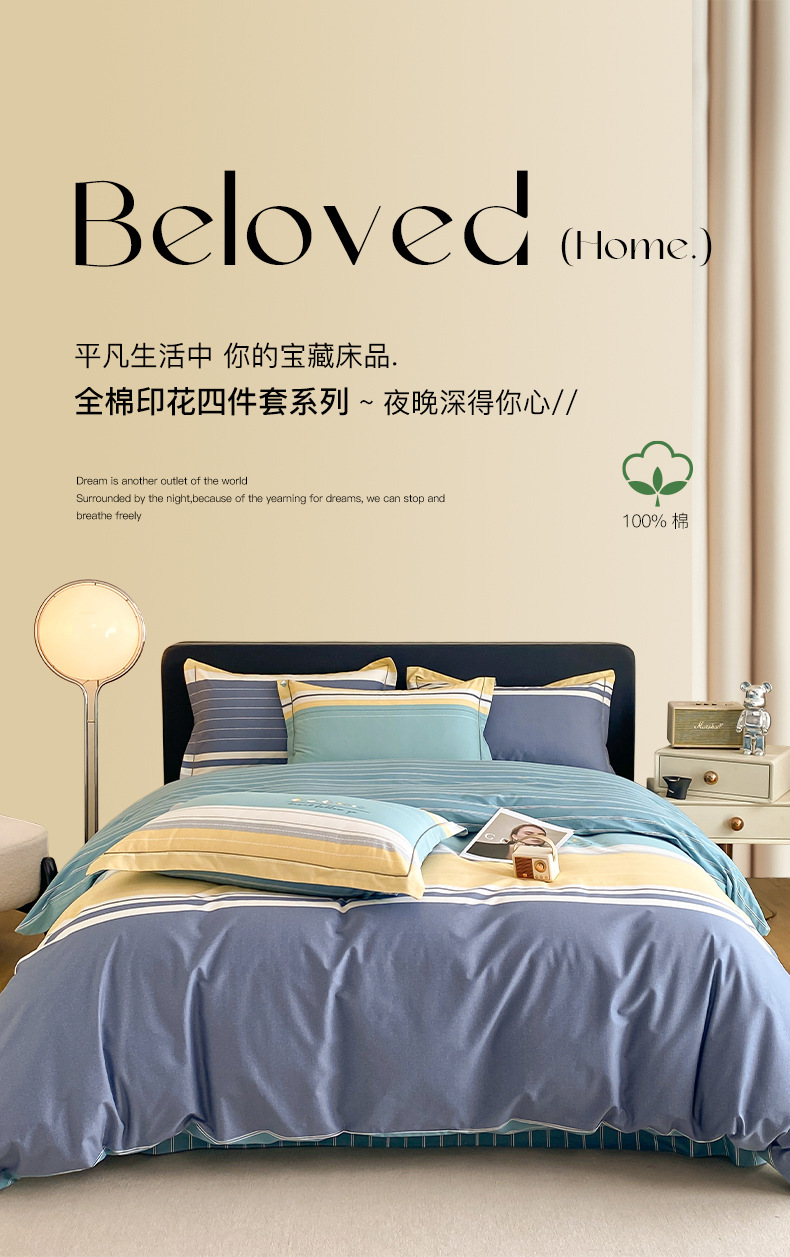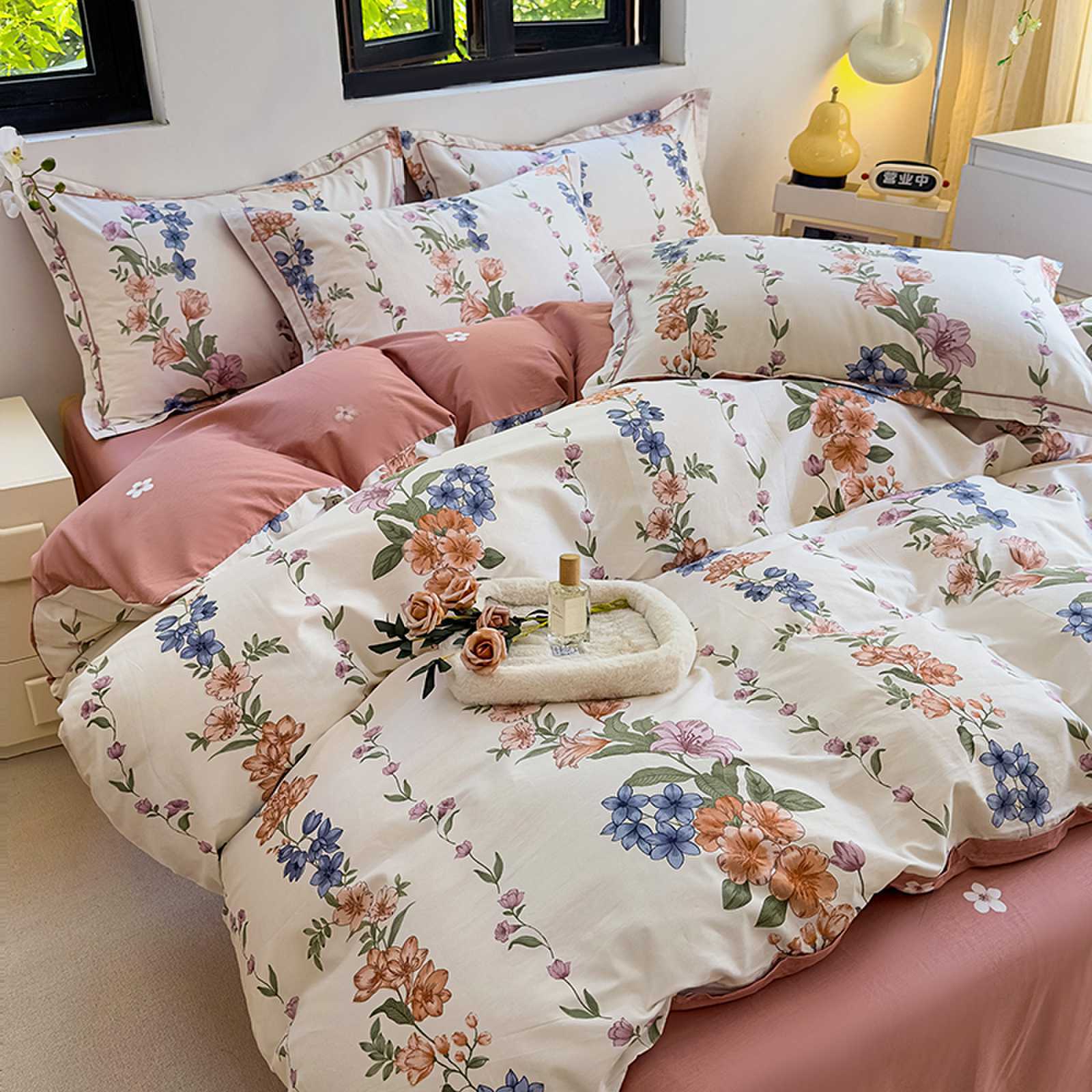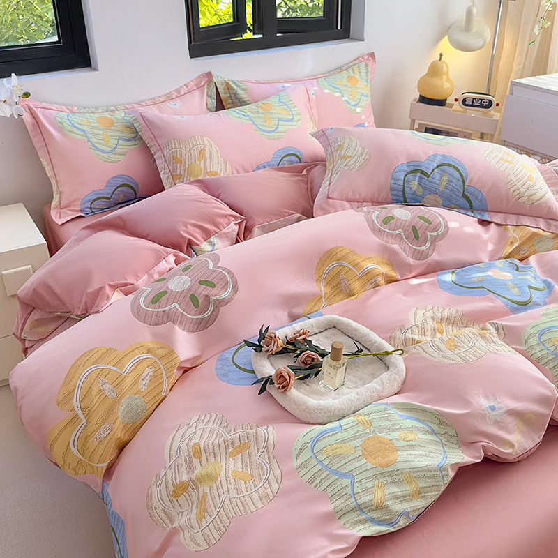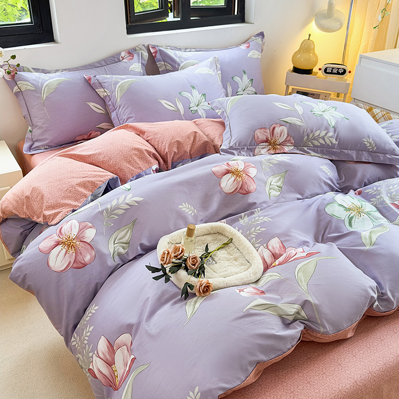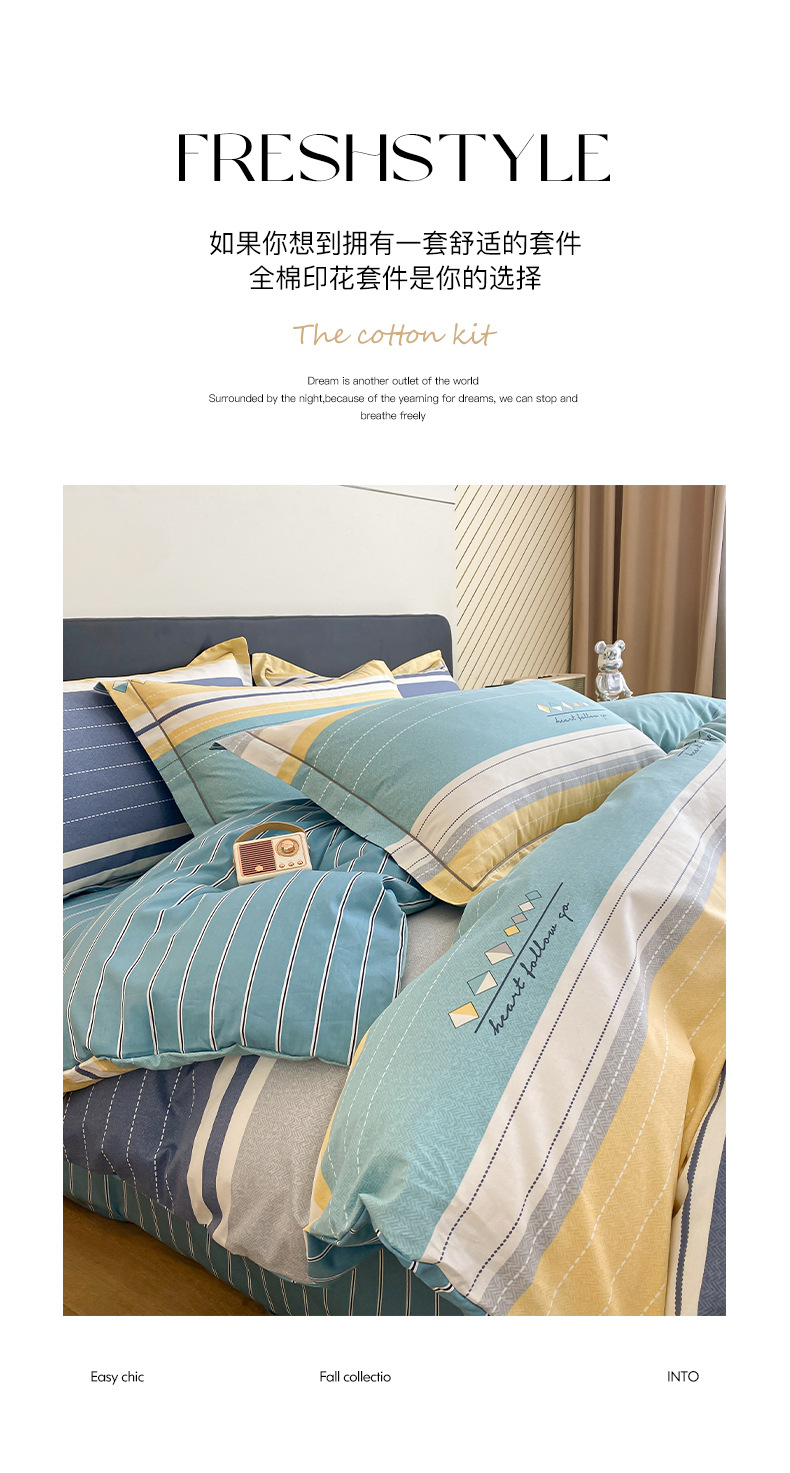 Four Seasons Cotton 4 조각 세트 두꺼운 코튼 퀼트 커버 침대 시트 더블 퀼트 커버 1.8 m 1.5m 침구스토어 가기