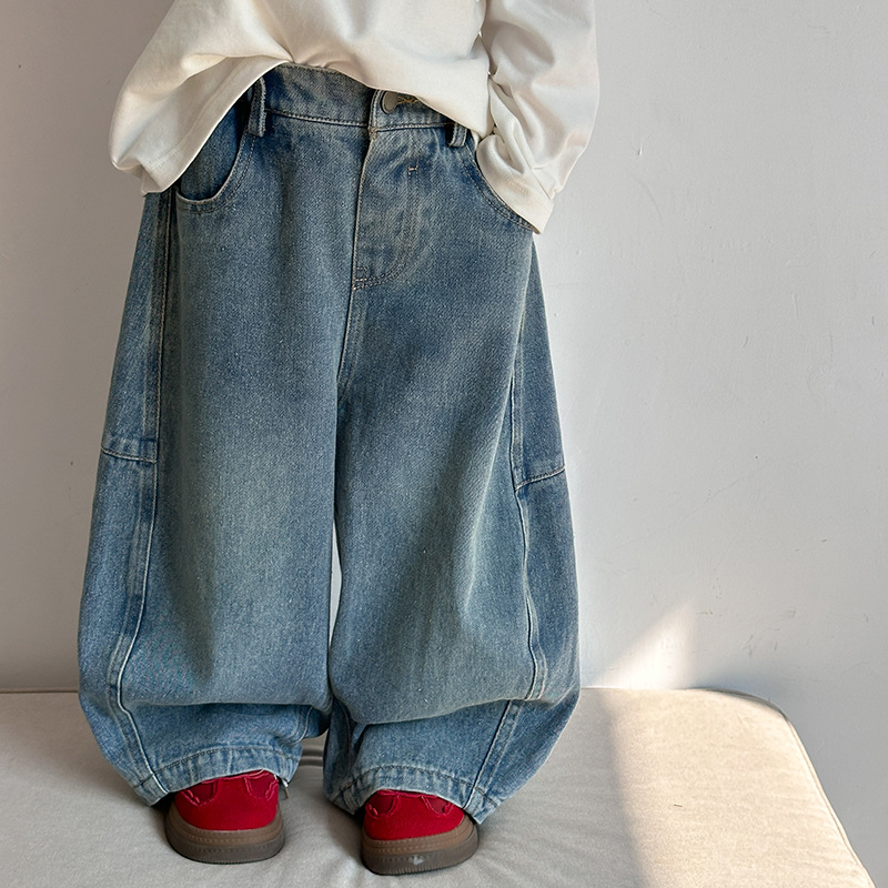 Elmo Beibei 봄, 가을 아동복 중대형 남녀 한국 스타일 루즈 캐주얼 스플리싱 청바지스토어 가기