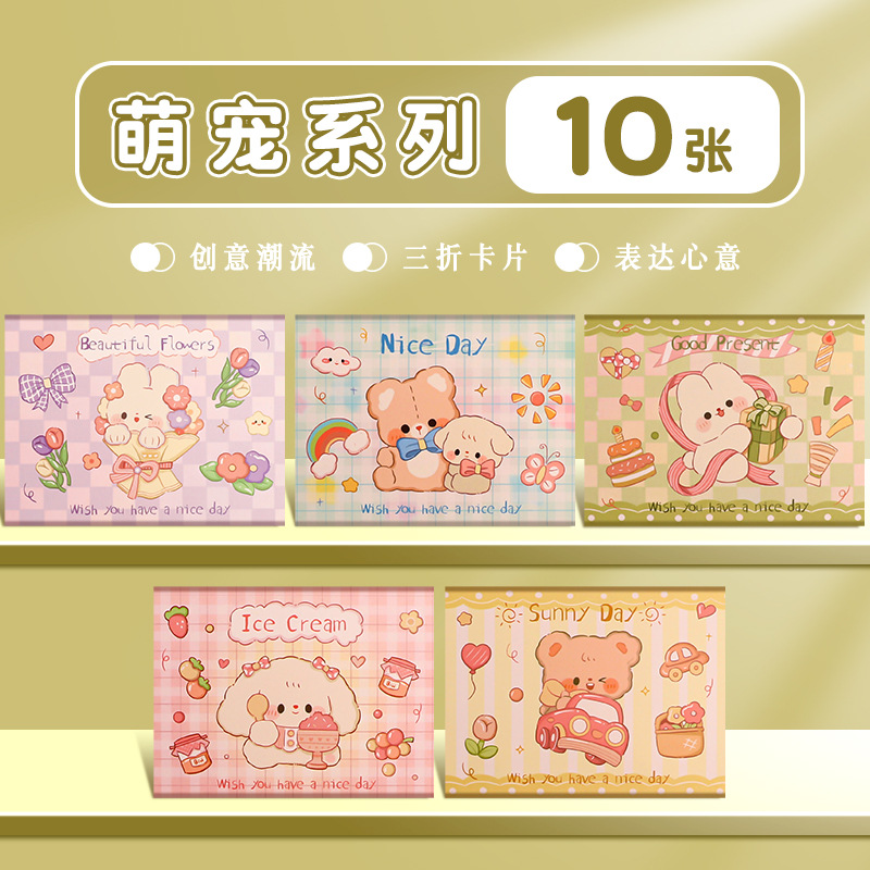 간단하고 신선한 교사의 날 휴일 카드 어머니의 날 메시지 카드 높은 색상 가치 재미 만화 30% 폴드 카드스토어 가기