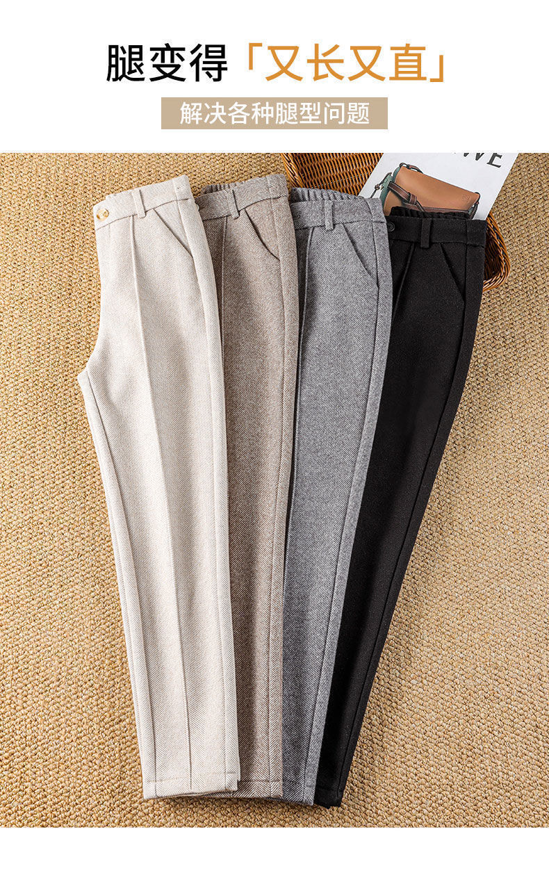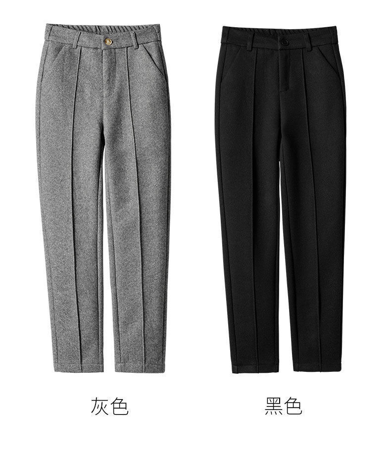 가을과 겨울 어린이를위한 모직 바지 2024 새로운 높은 허리 슬리밍 기모 두꺼운 캐주얼 하렘 바지 따뜻한 여성 바지