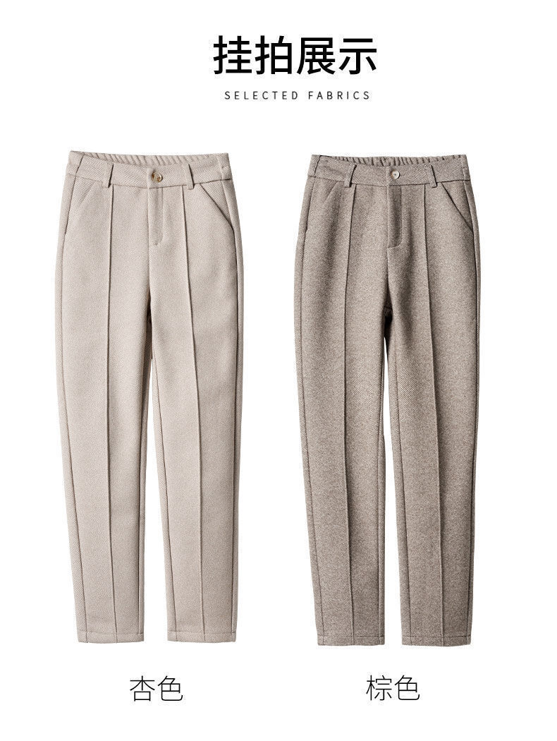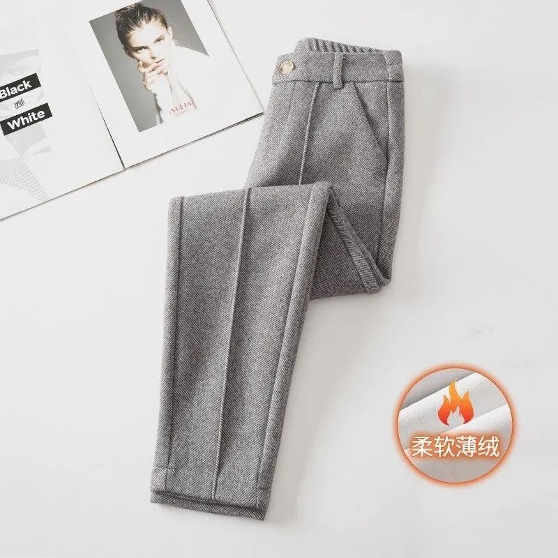 가을과 겨울 어린이를위한 모직 바지 2024 새로운 높은 허리 슬리밍 기모 두꺼운 캐주얼 하렘 바지 따뜻한 여성 바지스토어 가기