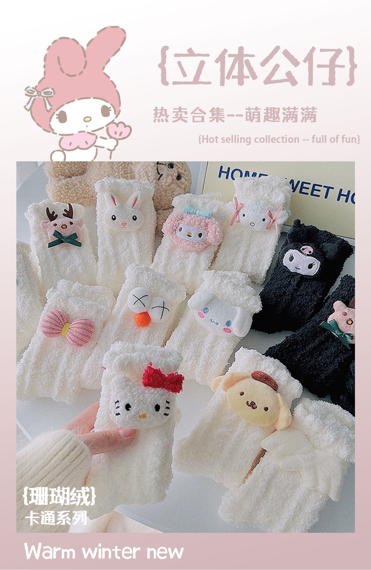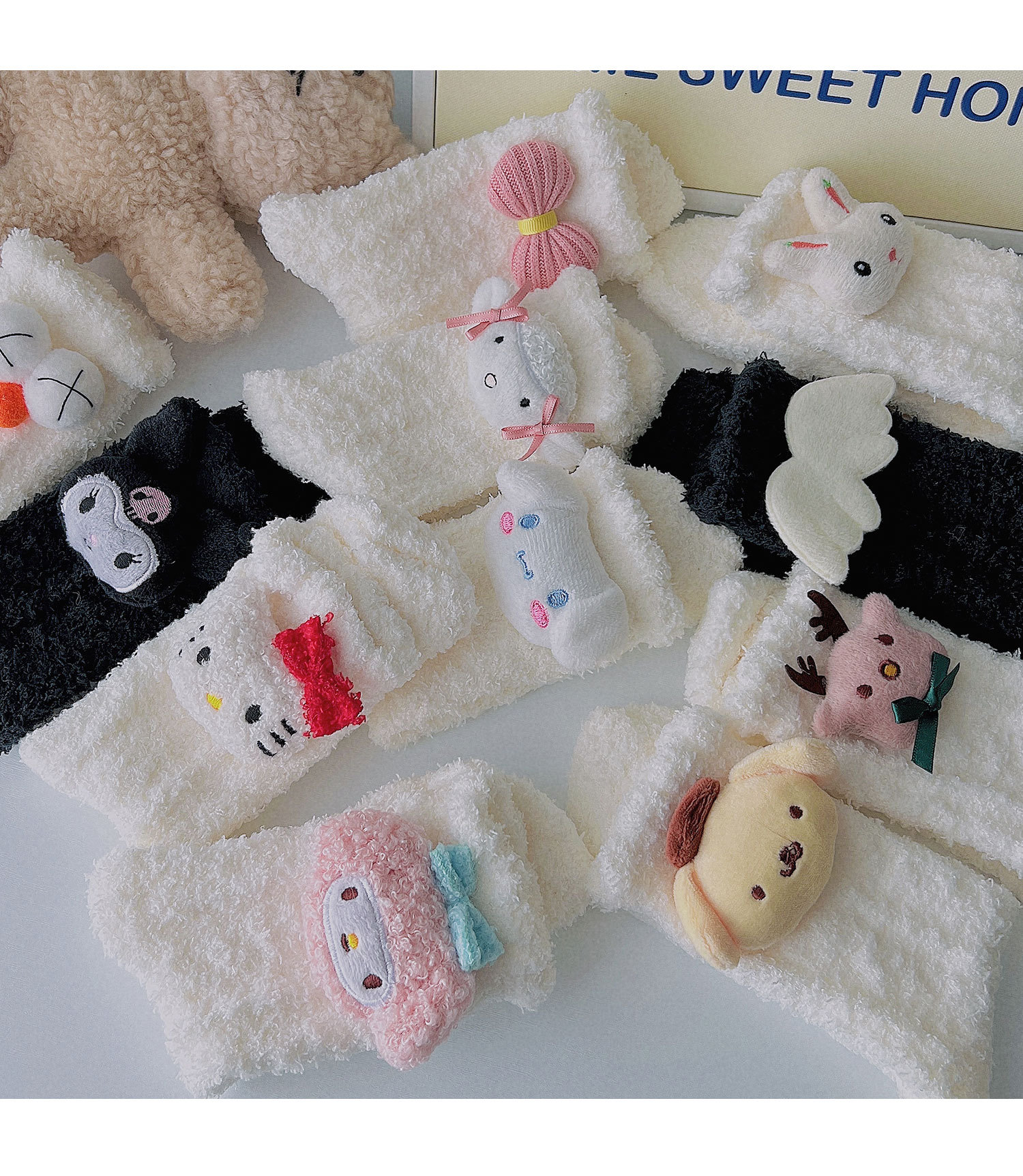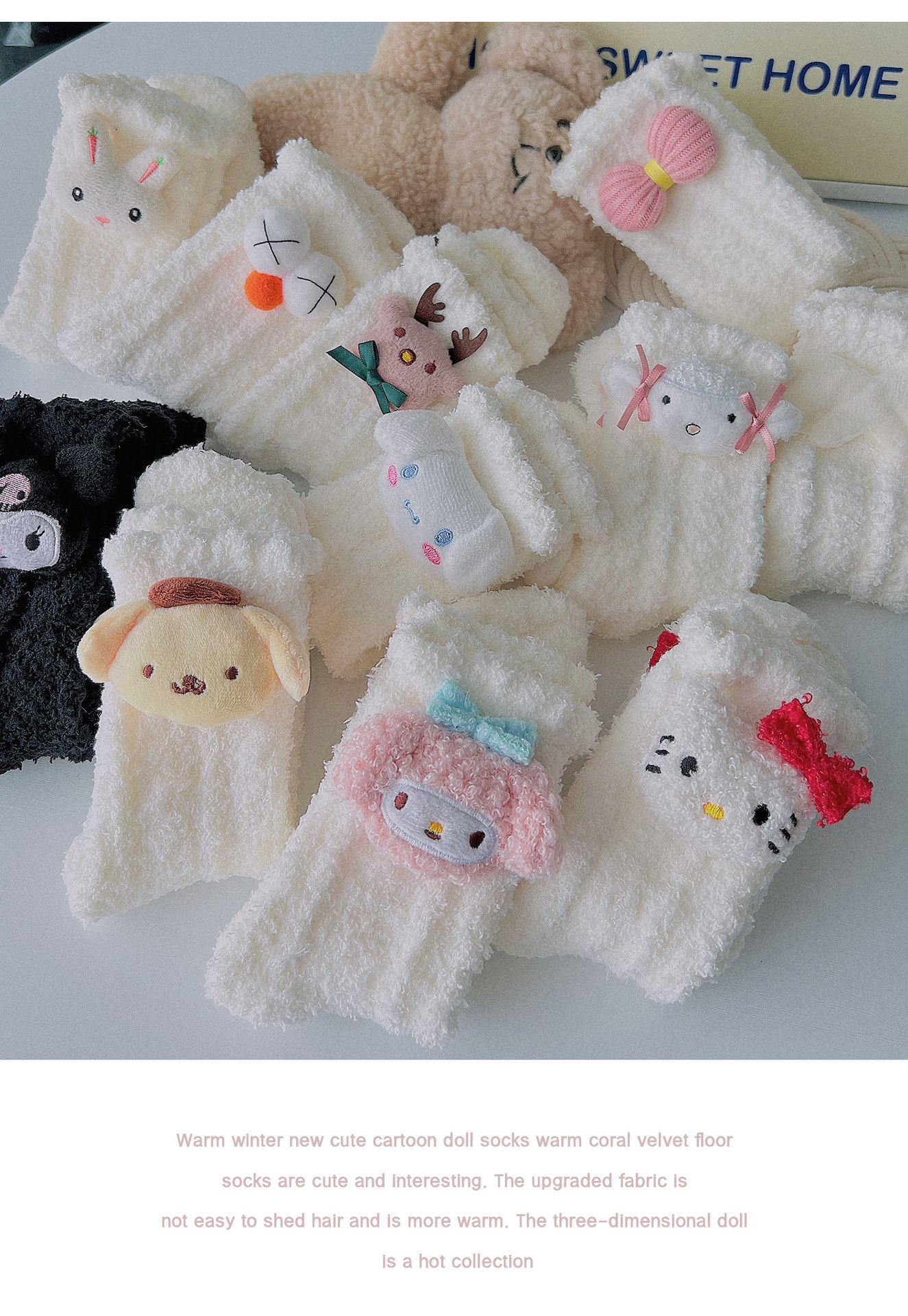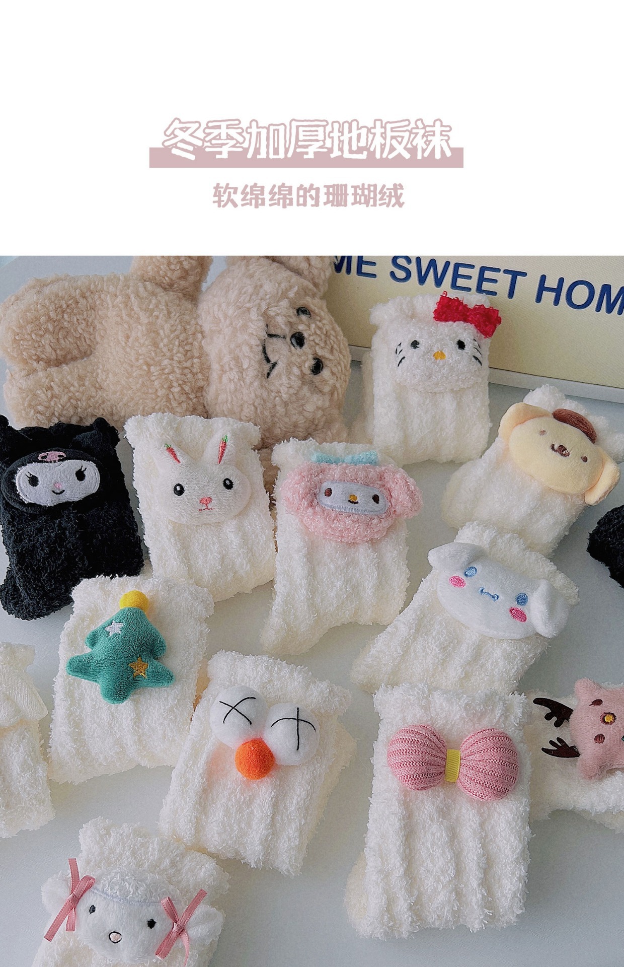 산호 벨벳 양말 여성의 봄과 가을 달 가을 산후 기모 두꺼운 귀여운 겨울 수면 수면 바닥 홈스토어 가기