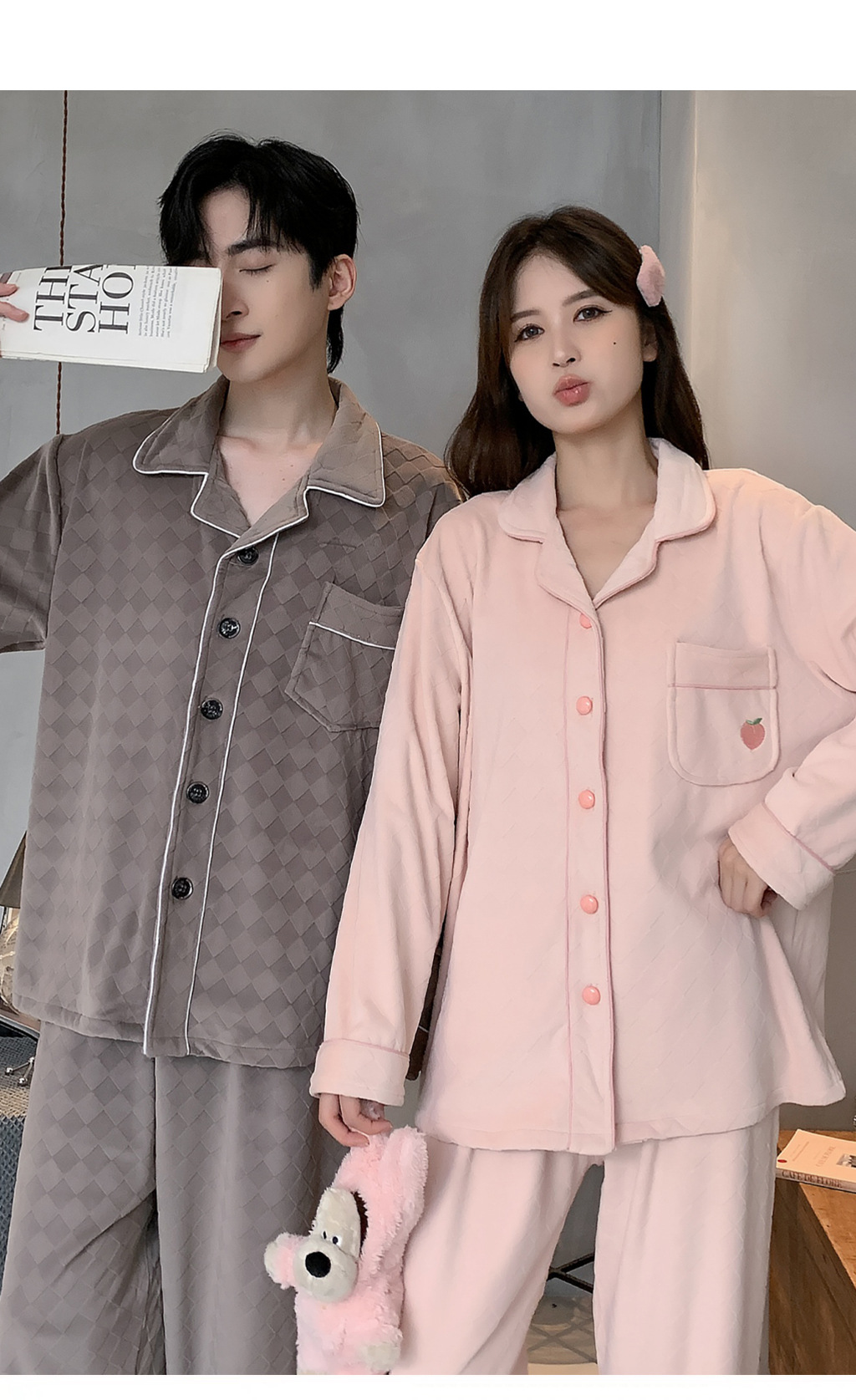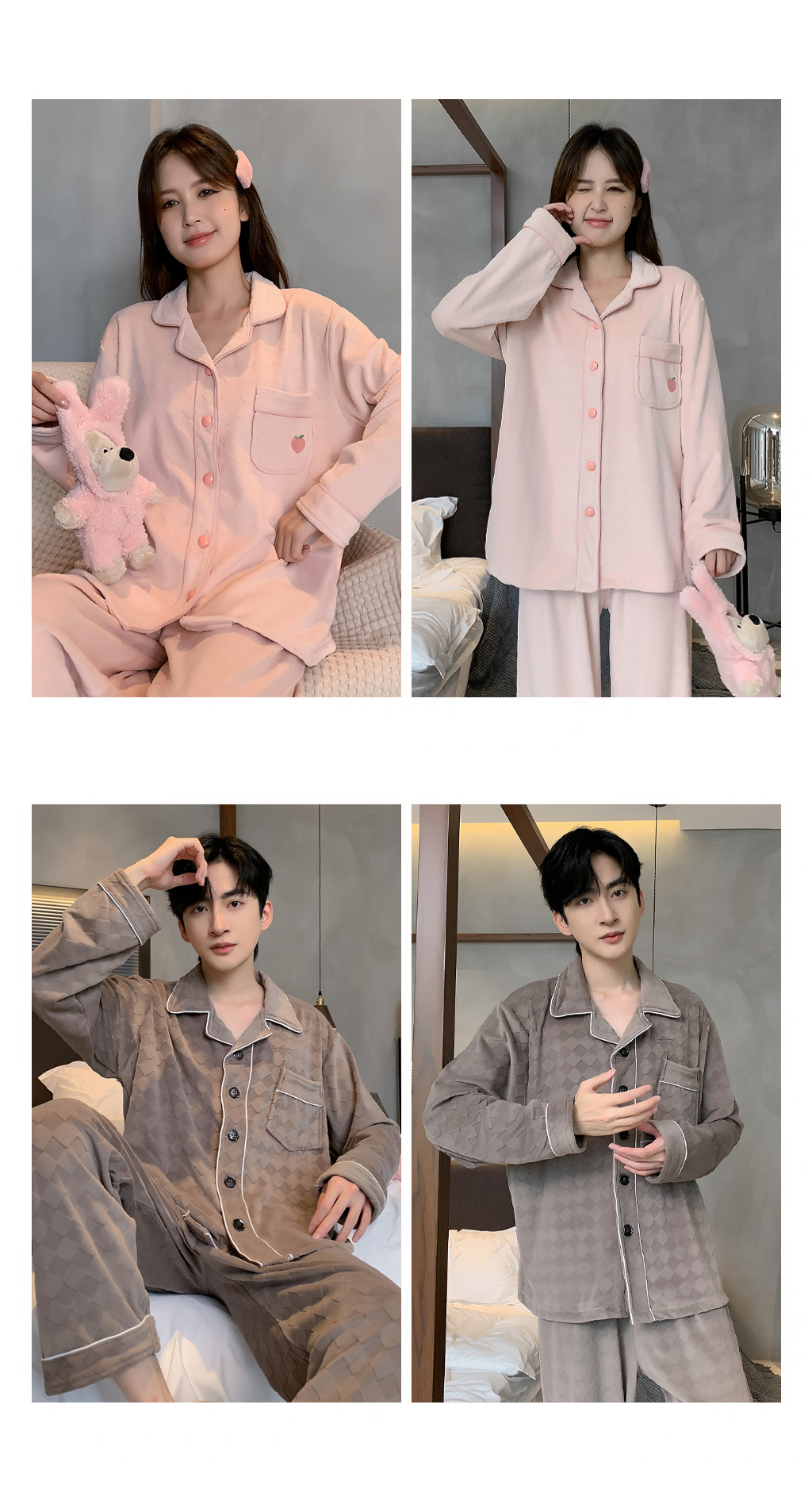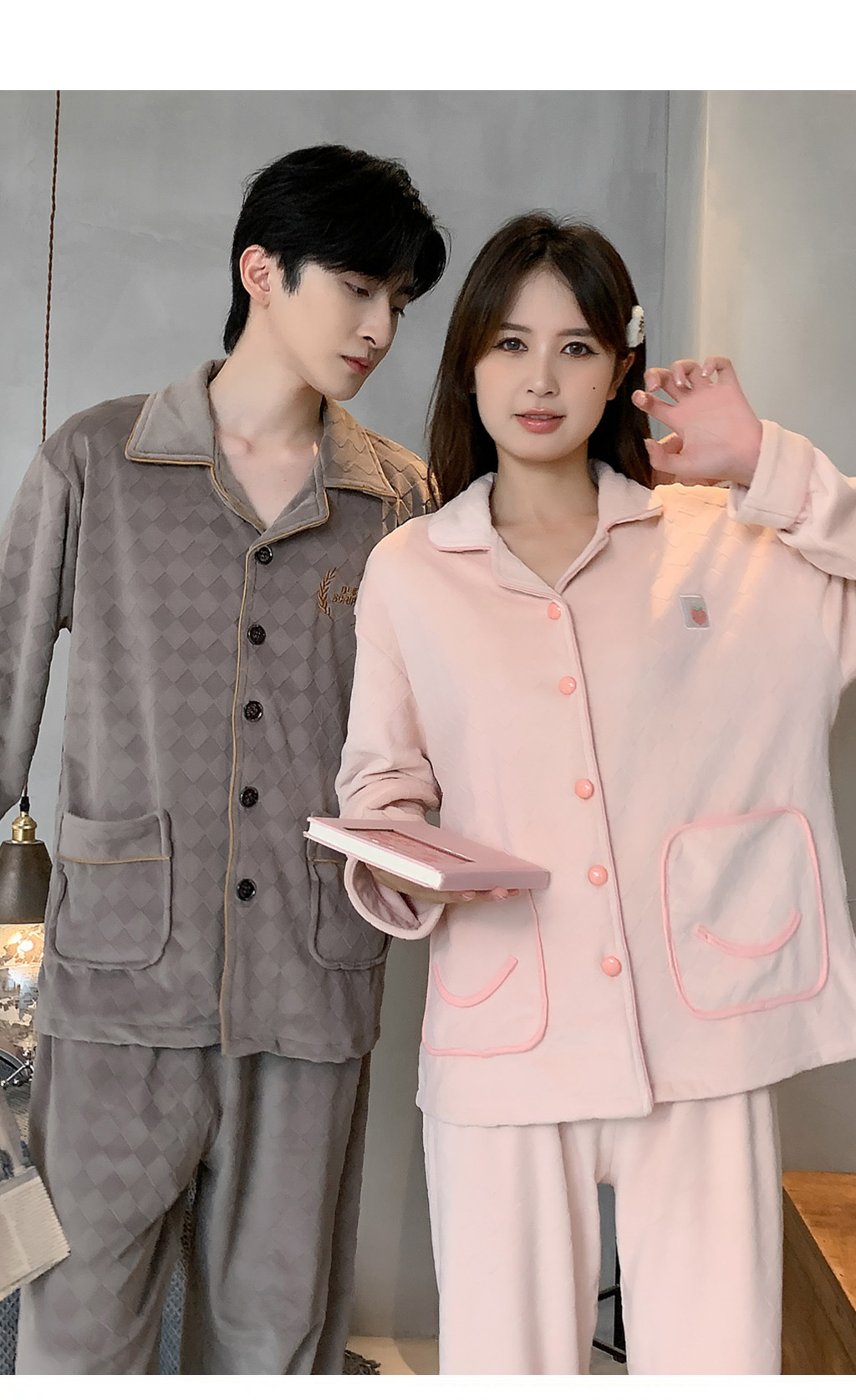 섬털 커플 잠옷 여성용 가을 겨울 신상 따뜻한 홈웨어 세트 심플하고 고급스러운 얇은 벨벳 남성용스토어 가기