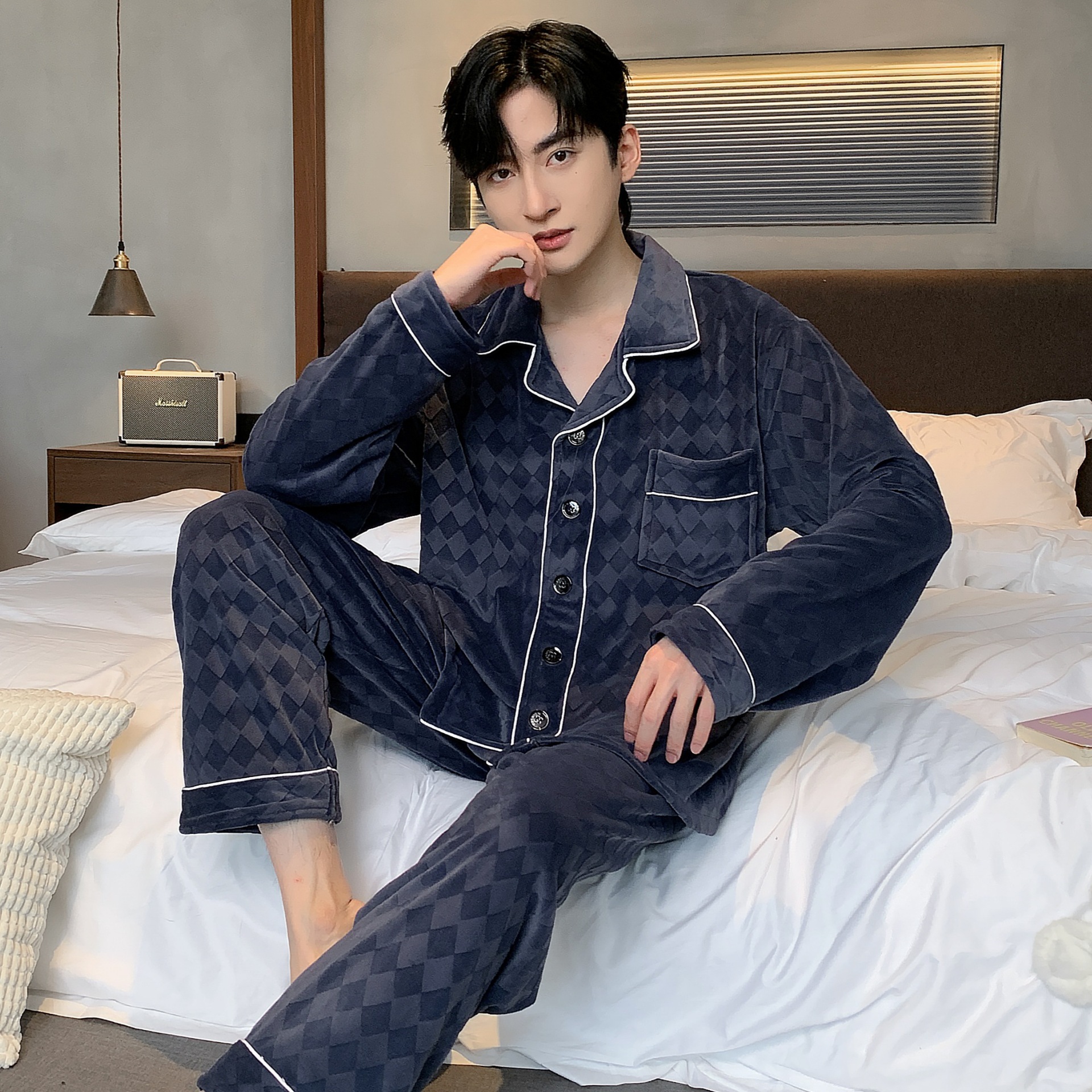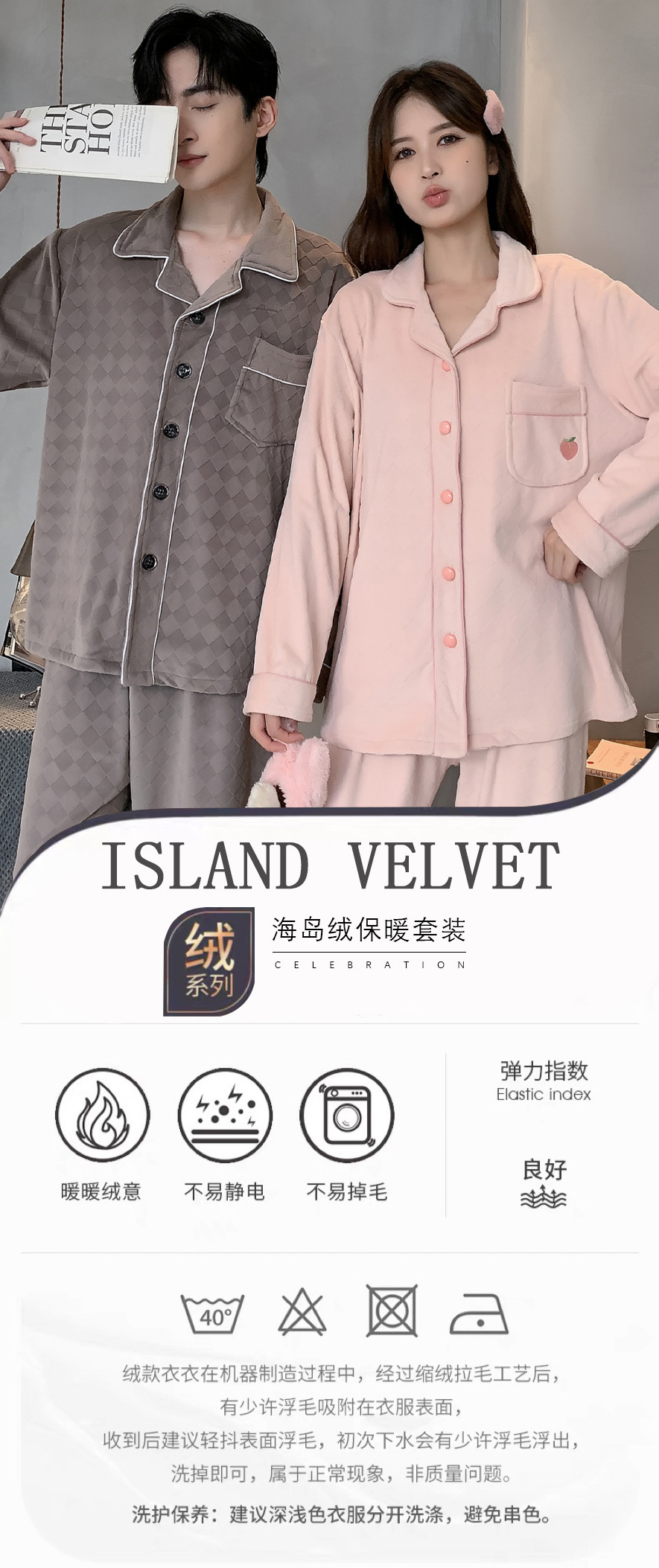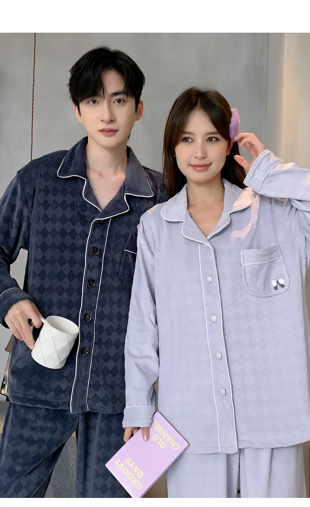 섬털 커플 잠옷 여성용 가을 겨울 신상 따뜻한 홈웨어 세트 심플하고 고급스러운 얇은 벨벳 남성용스토어 가기