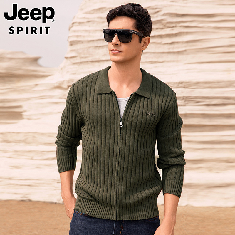 JEEP SPIRIT 지프 니트 가디건 남성용 단색 다용도 라펠 스웨터 남성용 보온 재킷 남성복스토어 가기