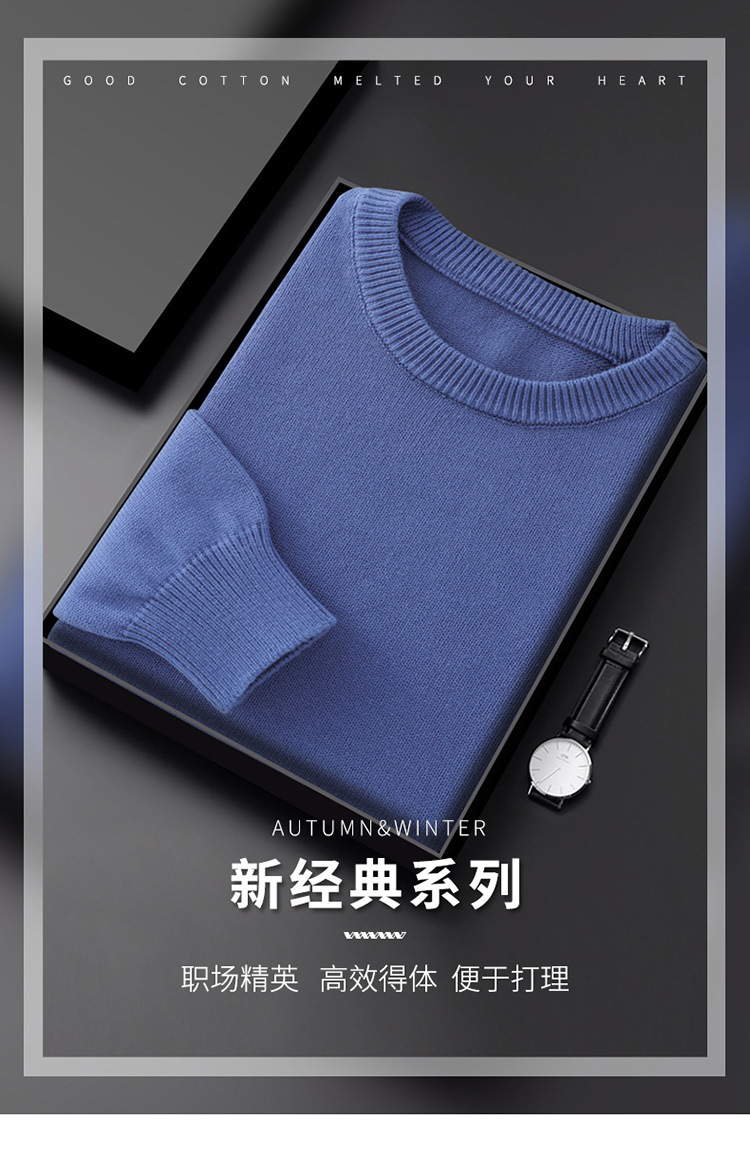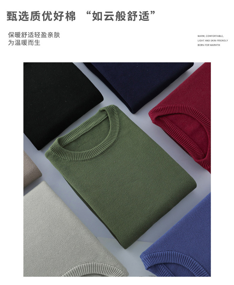새로운 100% 면 니트 스웨터 남자의 가을과 겨울 필링 풀오버 스웨터 느슨한 솔리드 컬러 라운드 넥베이스 스웨터스토어 가기