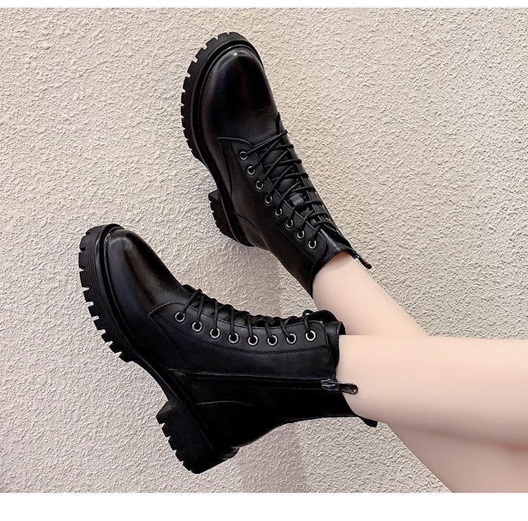소프트 가죽 마틴 부츠 여성 가을 얇은 싱글 부츠 영국 스타일 올 매치 쇼트 부츠 겨울 기모 2024 새로운 여성스토어 가기