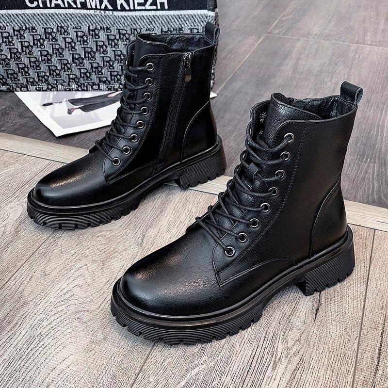 소프트 가죽 마틴 부츠 여성 가을 얇은 싱글 부츠 영국 스타일 올 매치 쇼트 부츠 겨울 기모 2024 새로운 여성