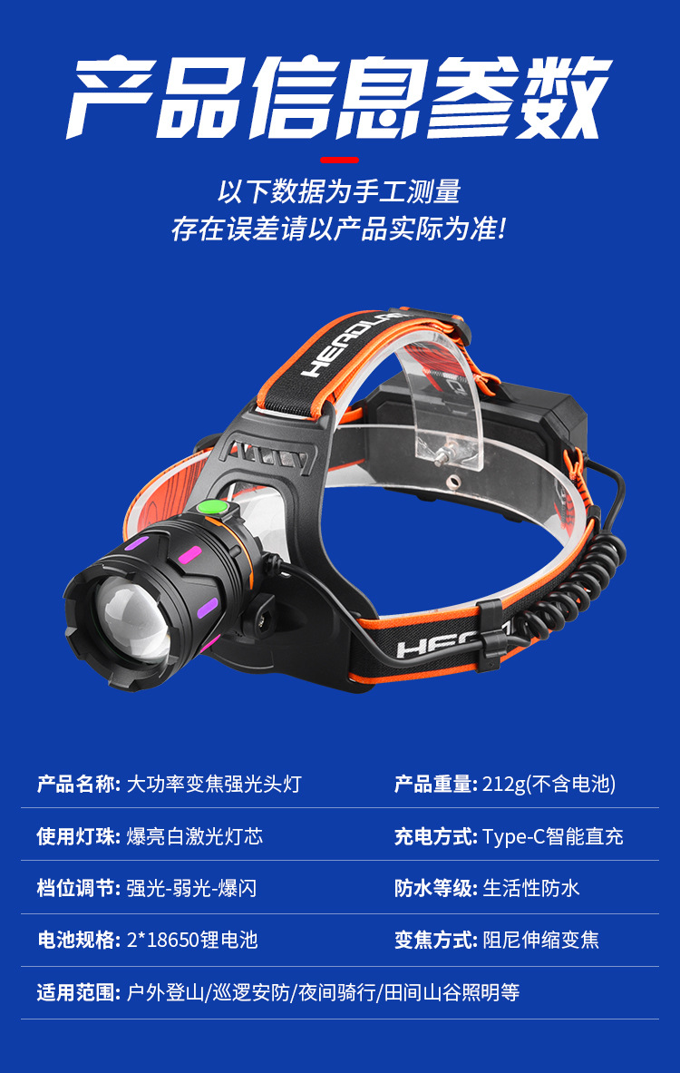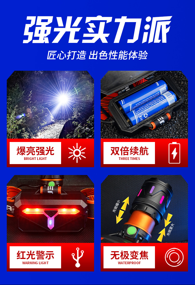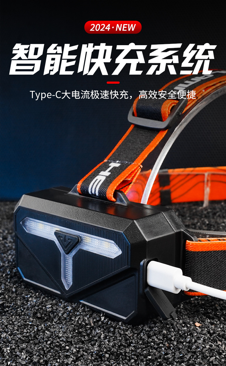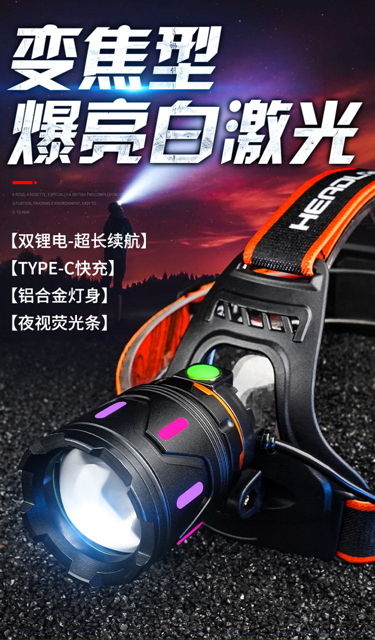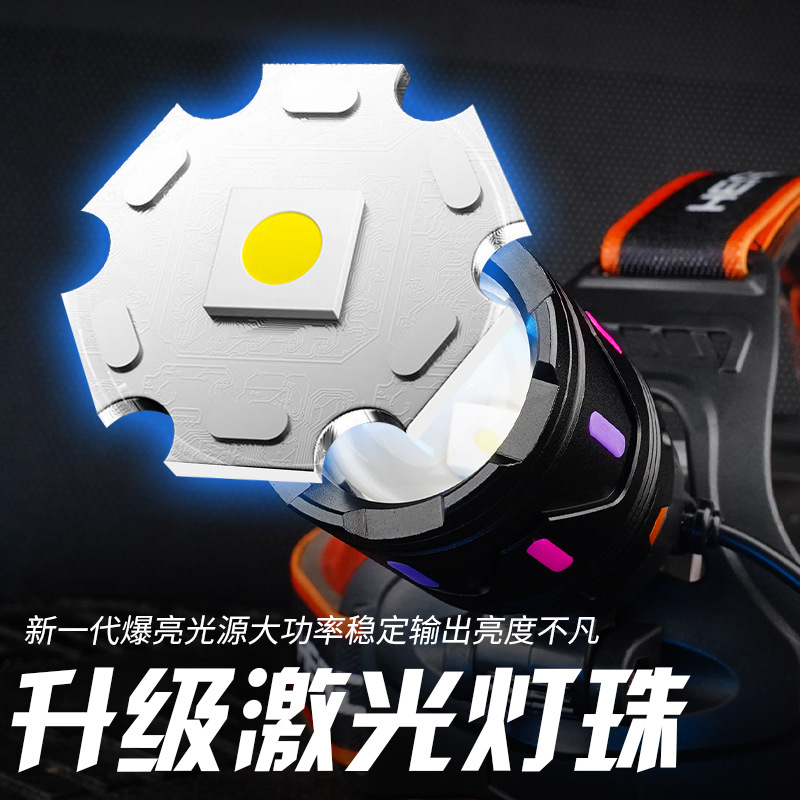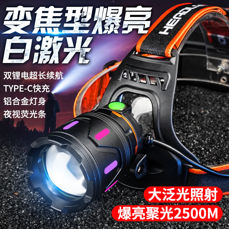 흰색 레이저 망원경 줌 헤드 램프 USB 충전 형광 발광 스트립 검사 램프 광부 램프 야간 승마 캠핑 램프