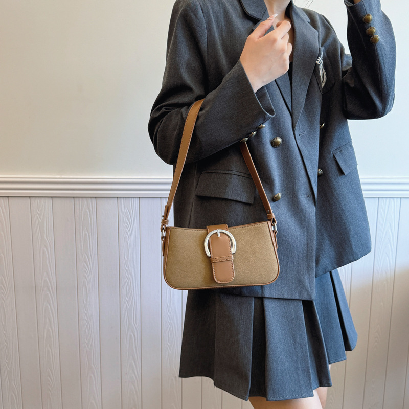 국경 간 대외 무역 라이브 방송 폭발적인 질감 틈새 디자인 레트로 올매치 여성 가방 프렌치 스틱 백 어깨 크로스 바디 안장 가방