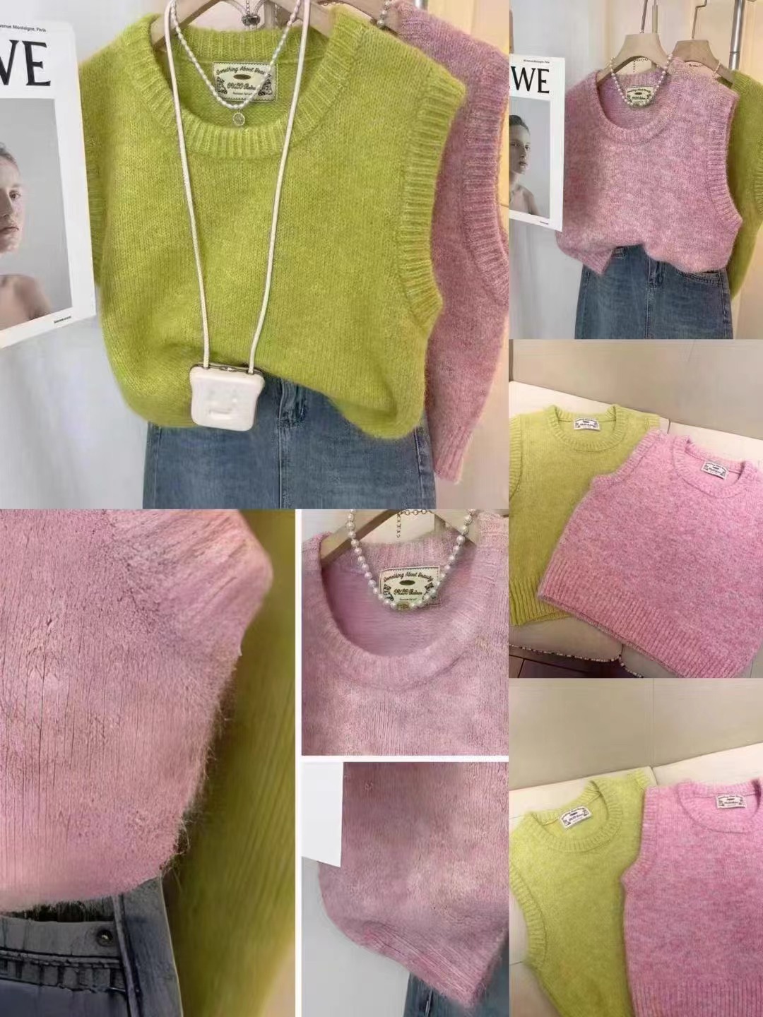여성 모헤어 니트 조끼 가을과 겨울 새로운 한국식 캔디 컬러 게으른 스타일 둥근 목 풀오버 민소매 조끼스토어 가기