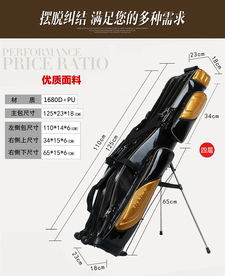 1.25 m 낚시 태클 가방 4 층 1.2 m 바다 기둥 가방 확대 하드 쉘 생선 장대 가방 낚시 가방 배꼽 물고기 Jiatai