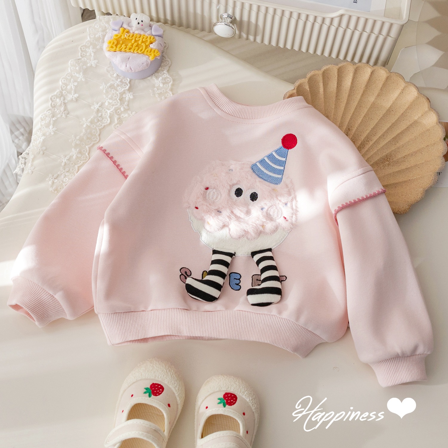 소녀 유행 자수 스웨터 2025 봄과 가을 새로운 도착 세련된 탑 아기 한국 스타일 귀여운 3 차원 풀오버